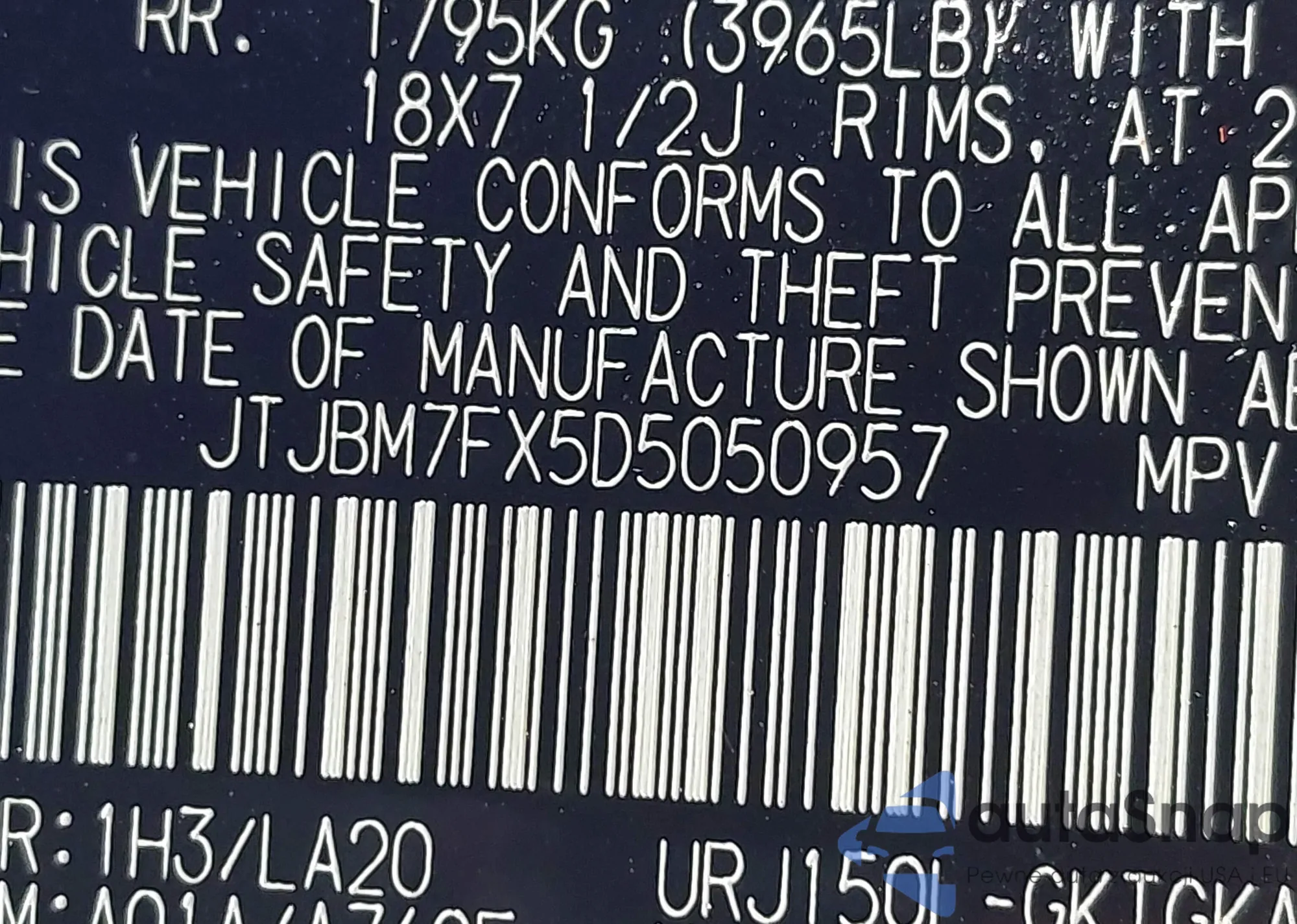 • VIN JTJBM7FX5D5050957