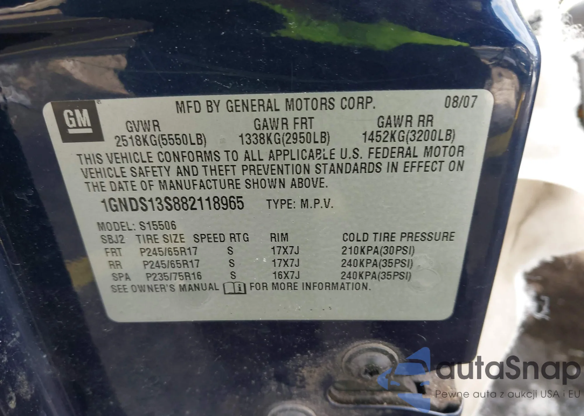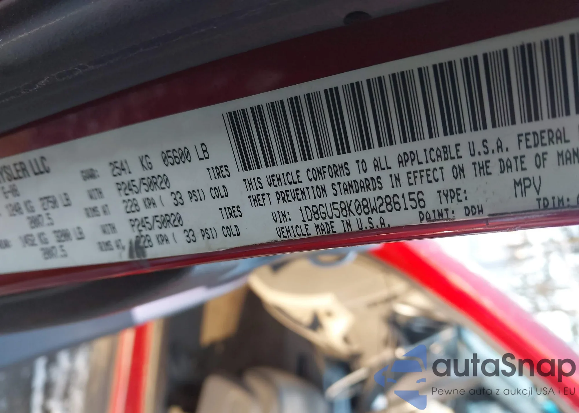 • VIN 1D8GU58K08W286156