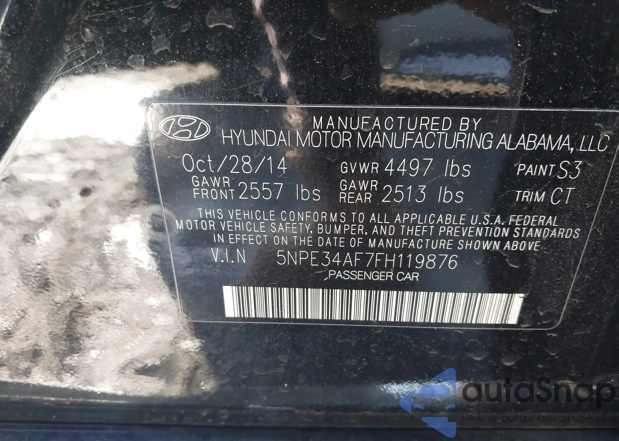 LOT: 43944625 VIN: 5NPE34AF7FH119876