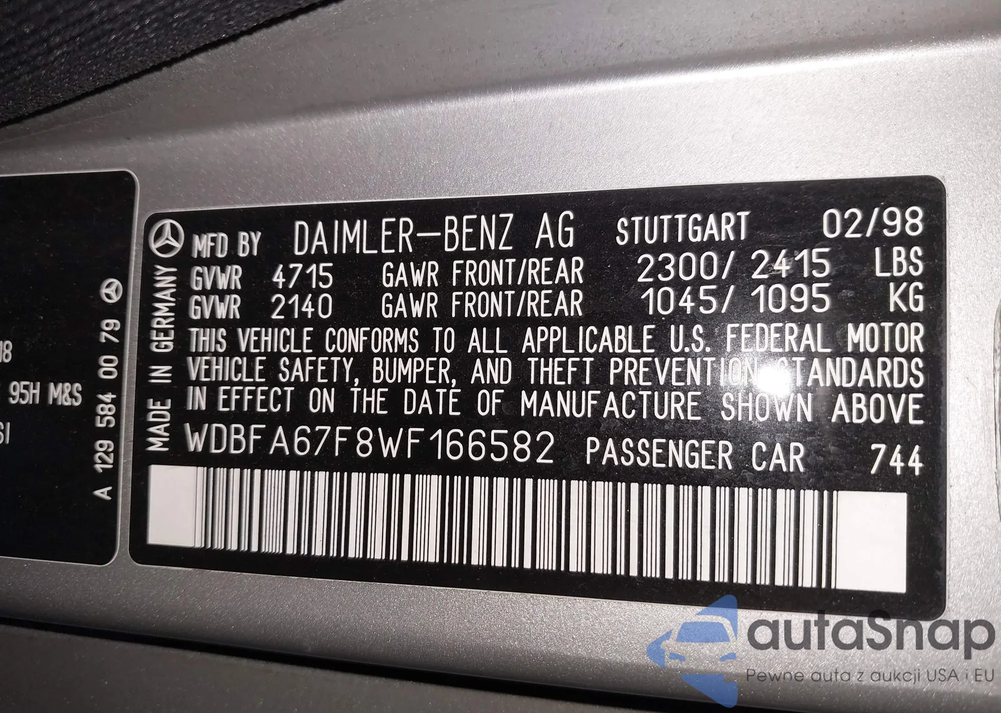 LOT: 43946872 VIN: WDBFA67F8WF166582