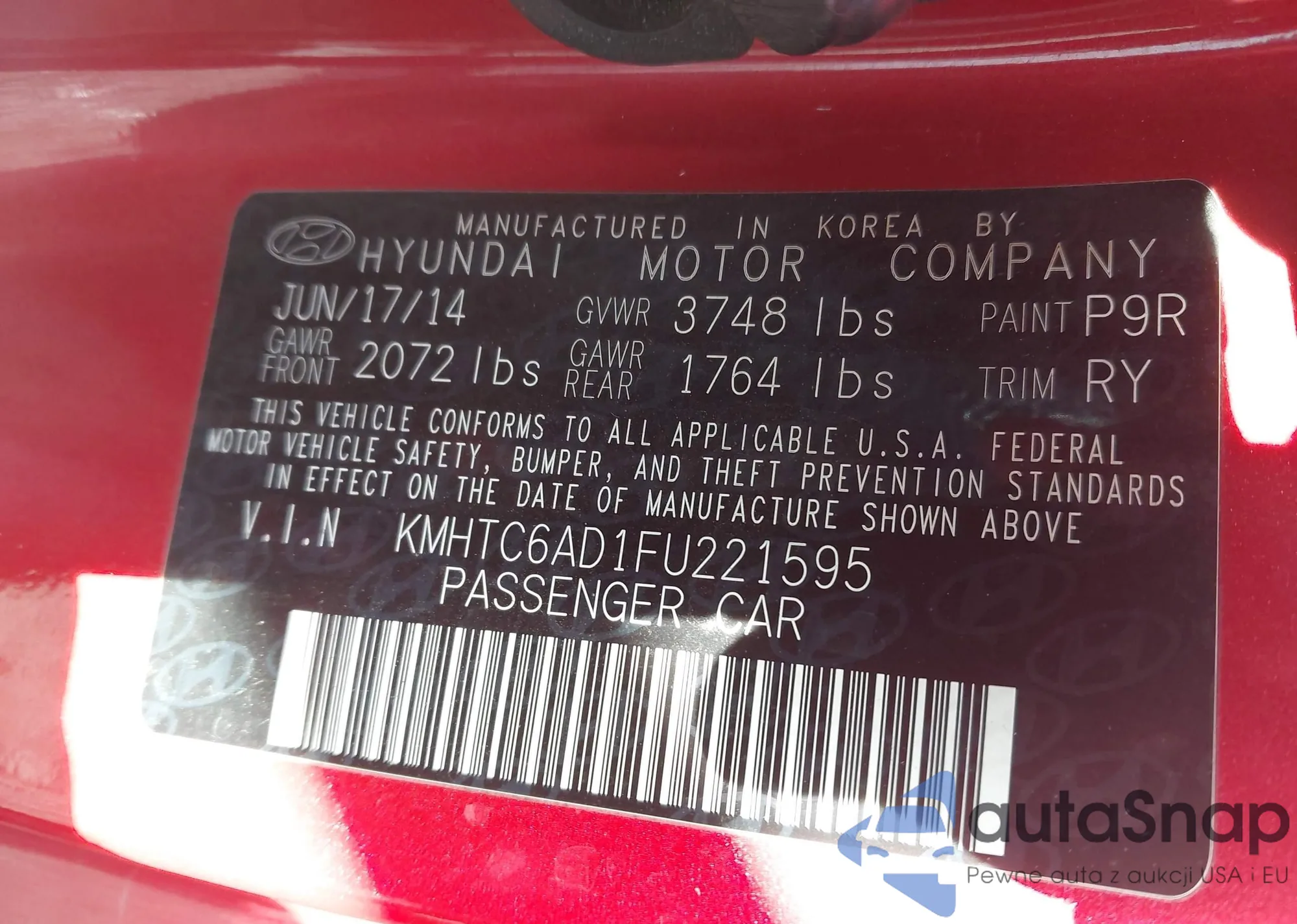 • VIN KMHTC6AD1FU221595