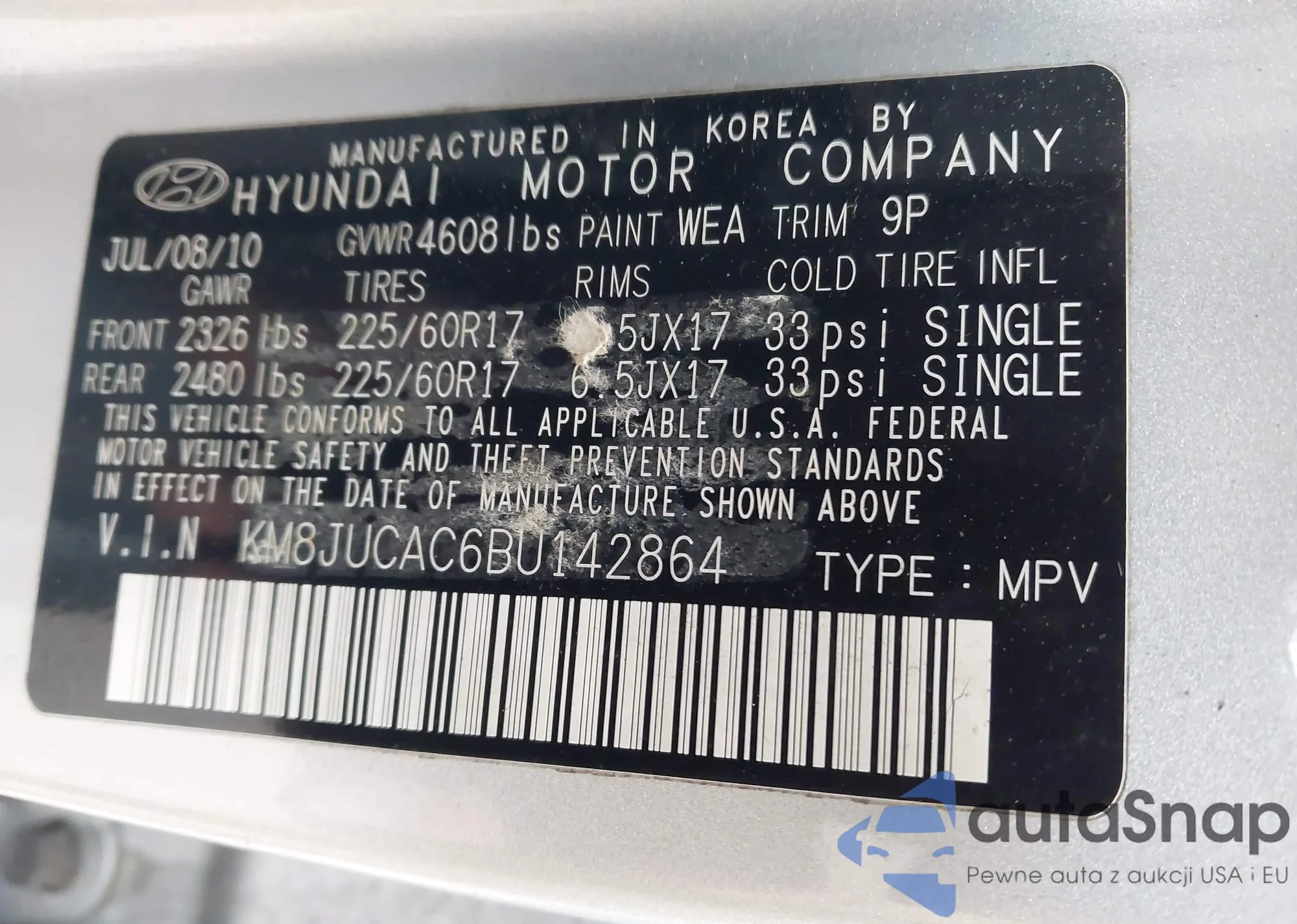 • VIN KM8JUCAC6BU142864