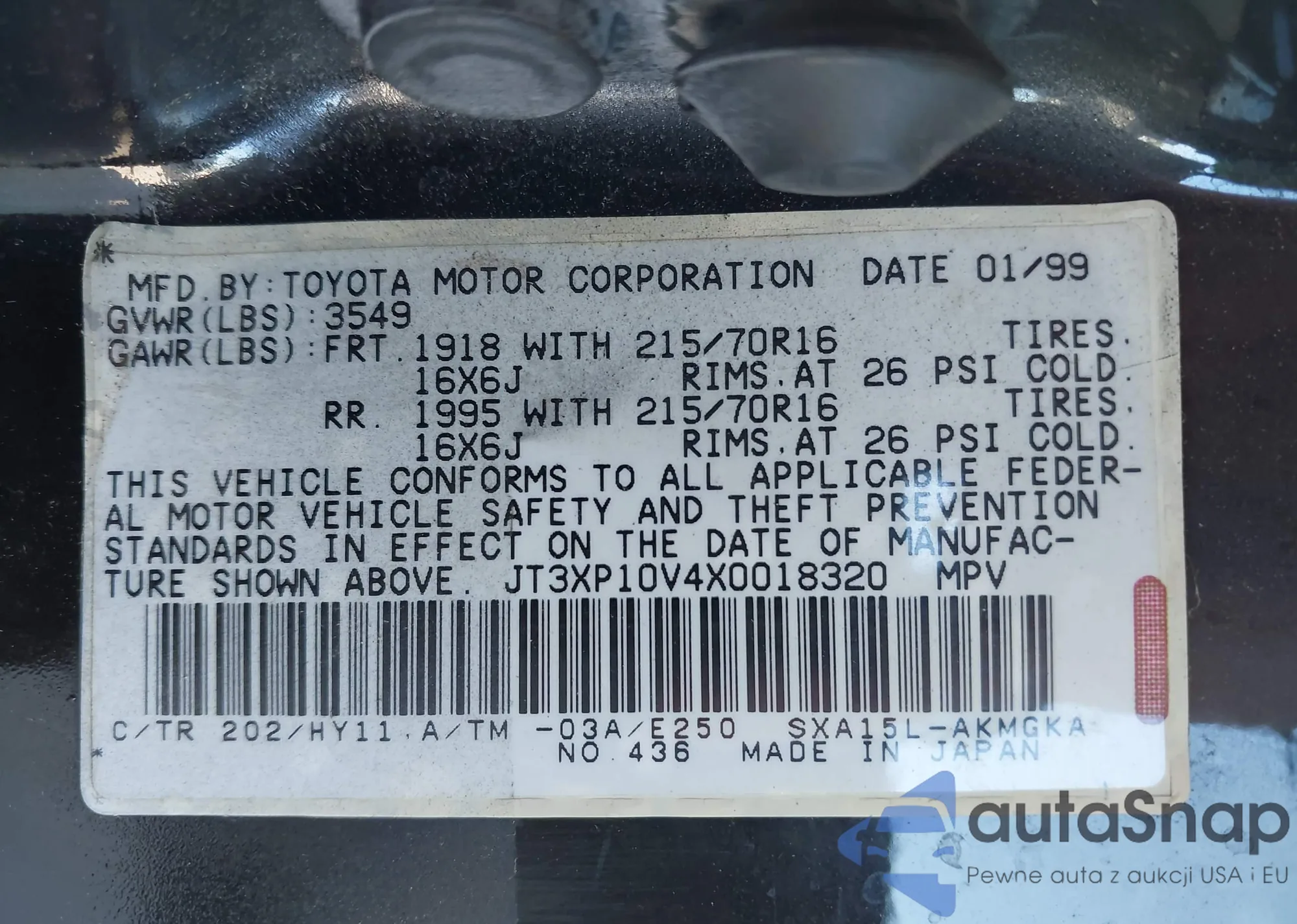 LOT: 44037928 VIN: JT3XP10V4X0018320