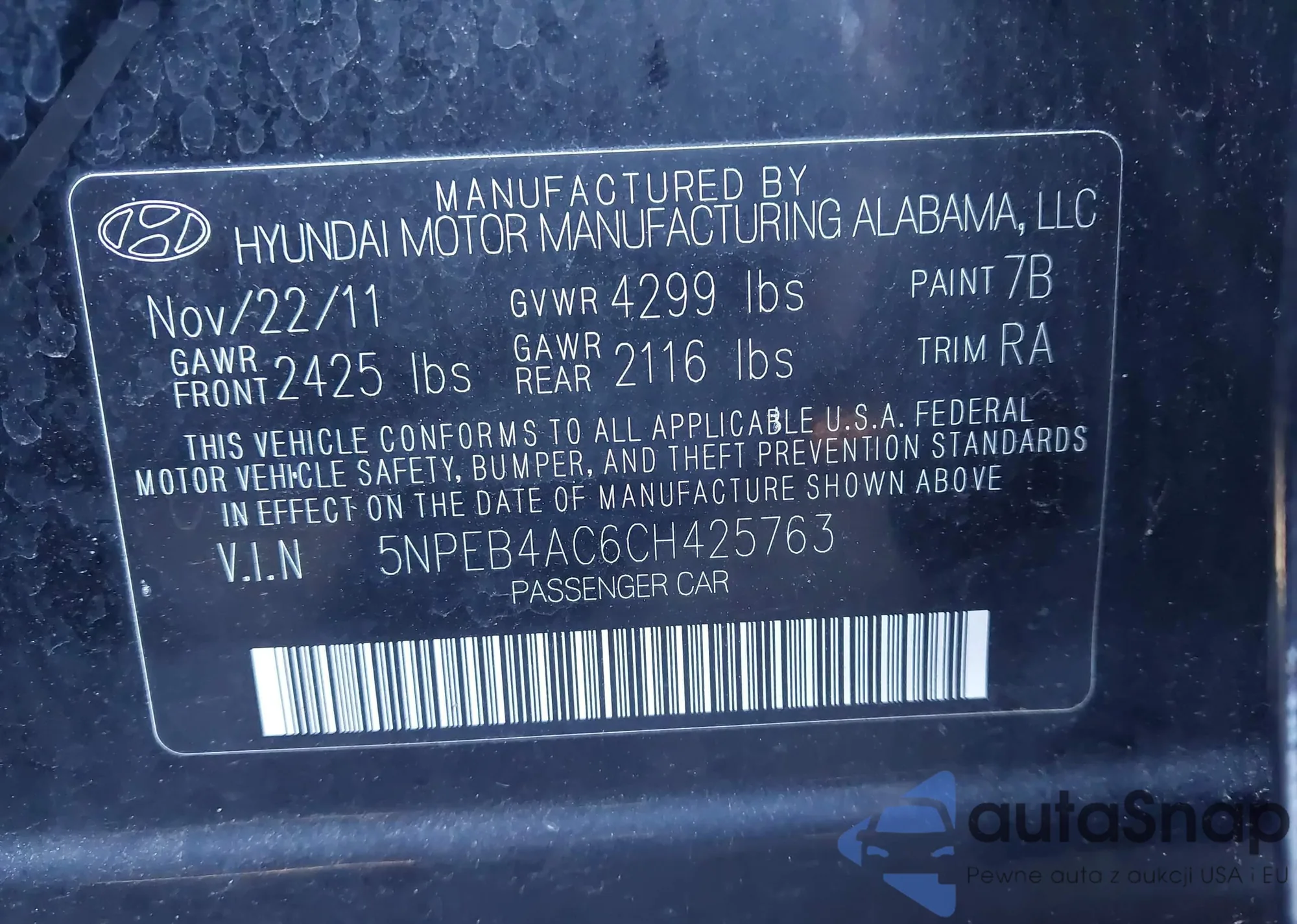 • VIN 5NPEB4AC6CH425763