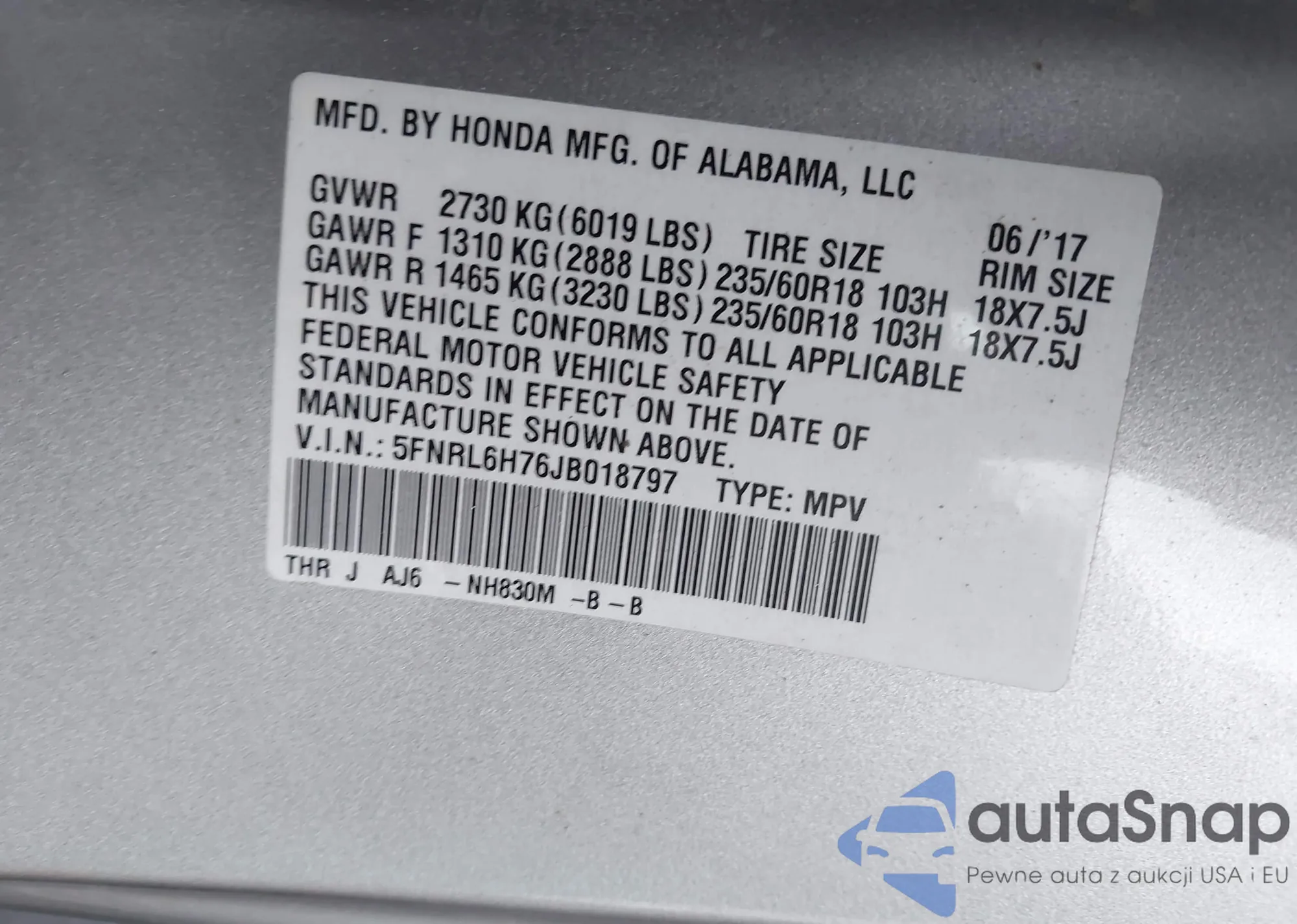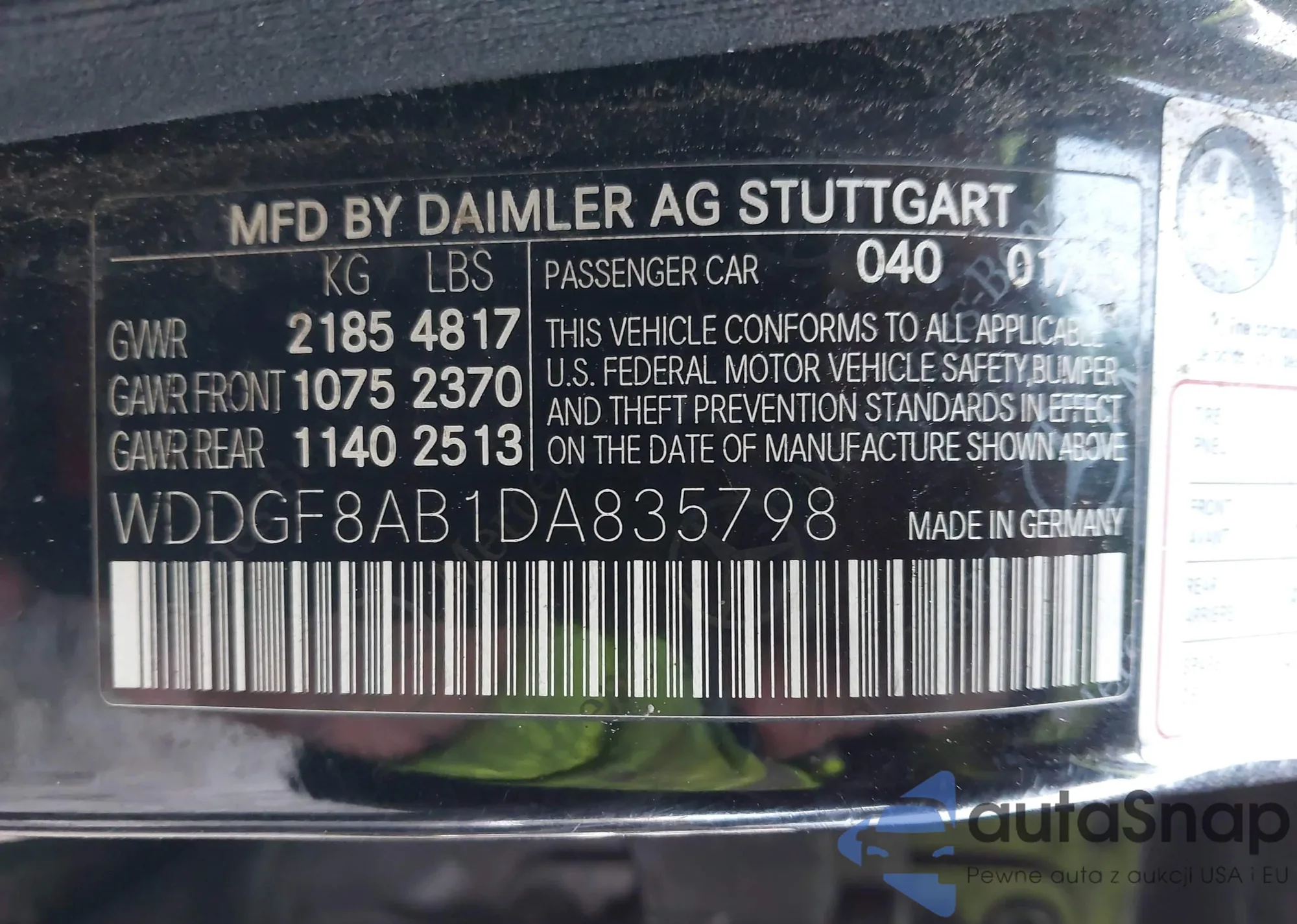 LOT: 43920512 VIN: WAUNNAF54JA010569