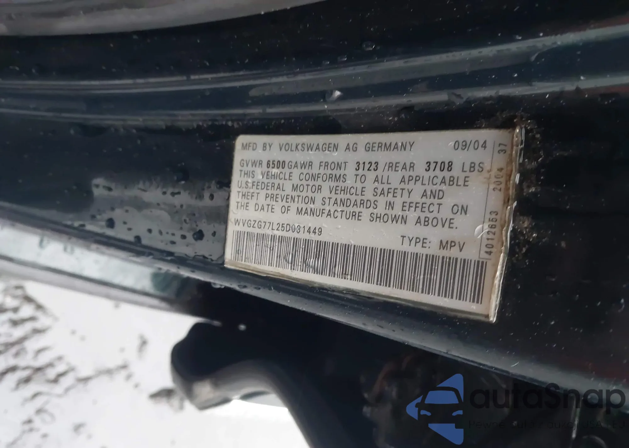 LOT: 43924649 VIN: WVGZG77L25D031449