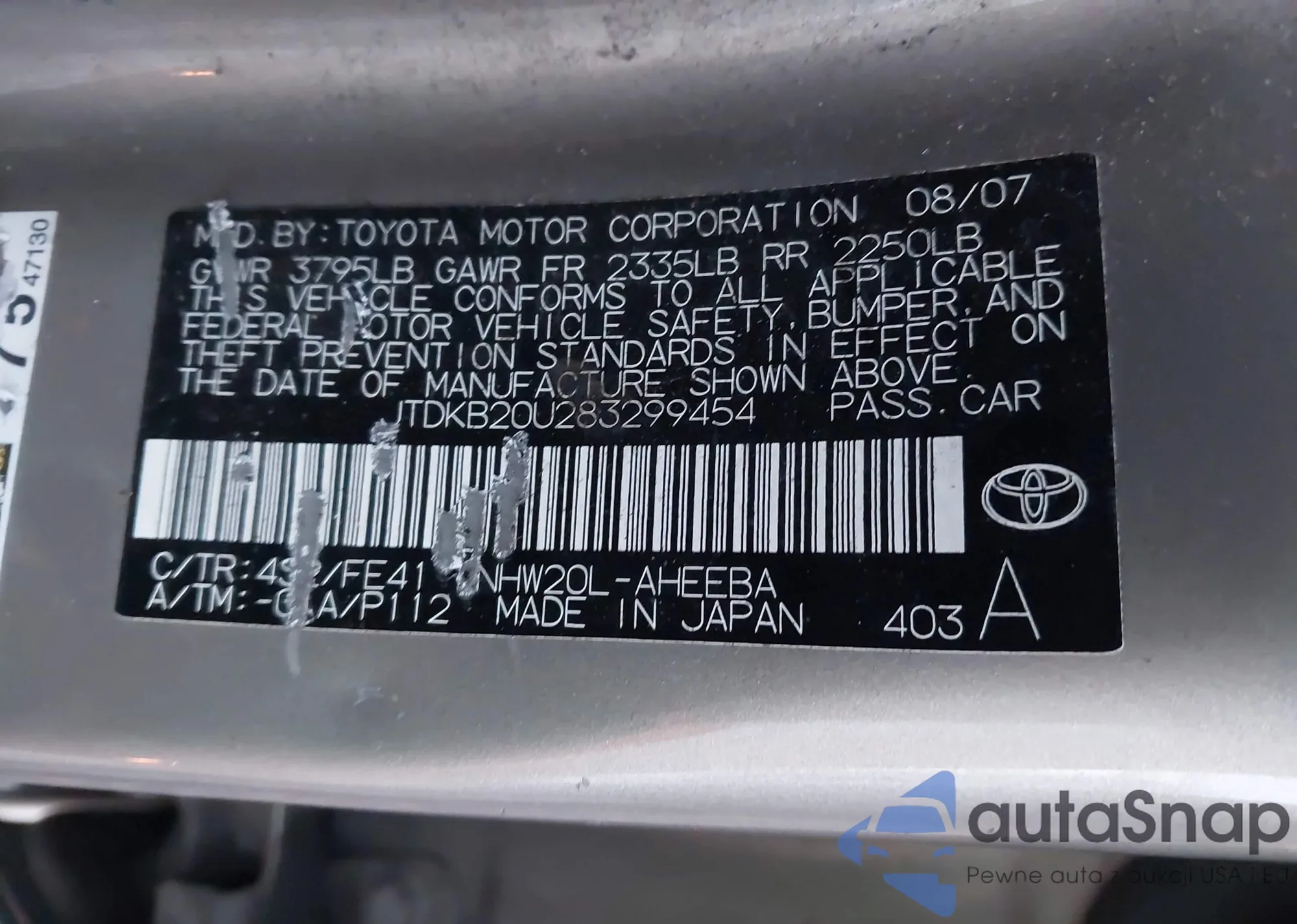 LOT: 44003549 VIN: 2HGFA16808H332247