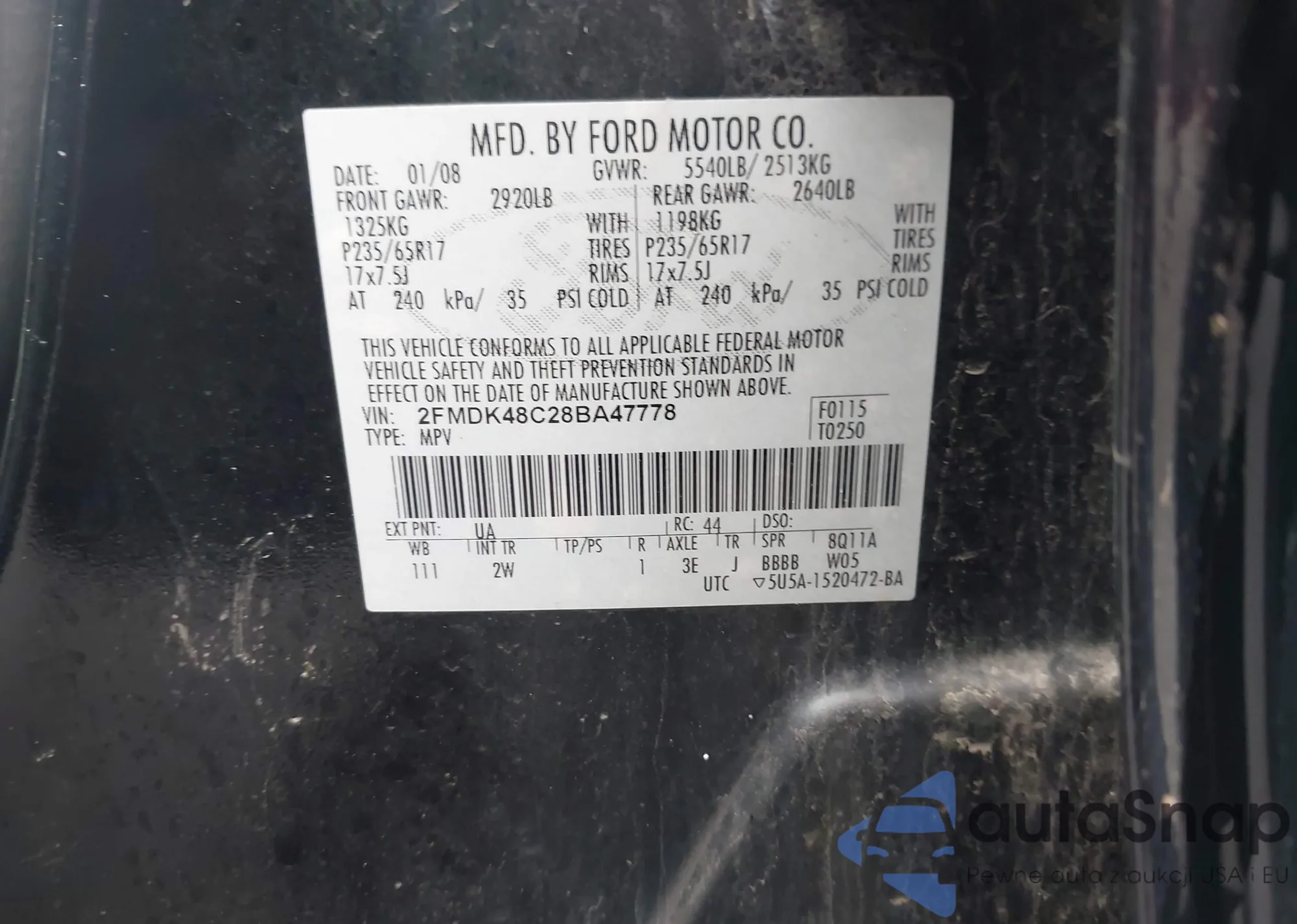 • VIN 2FMDK48C28BA47778