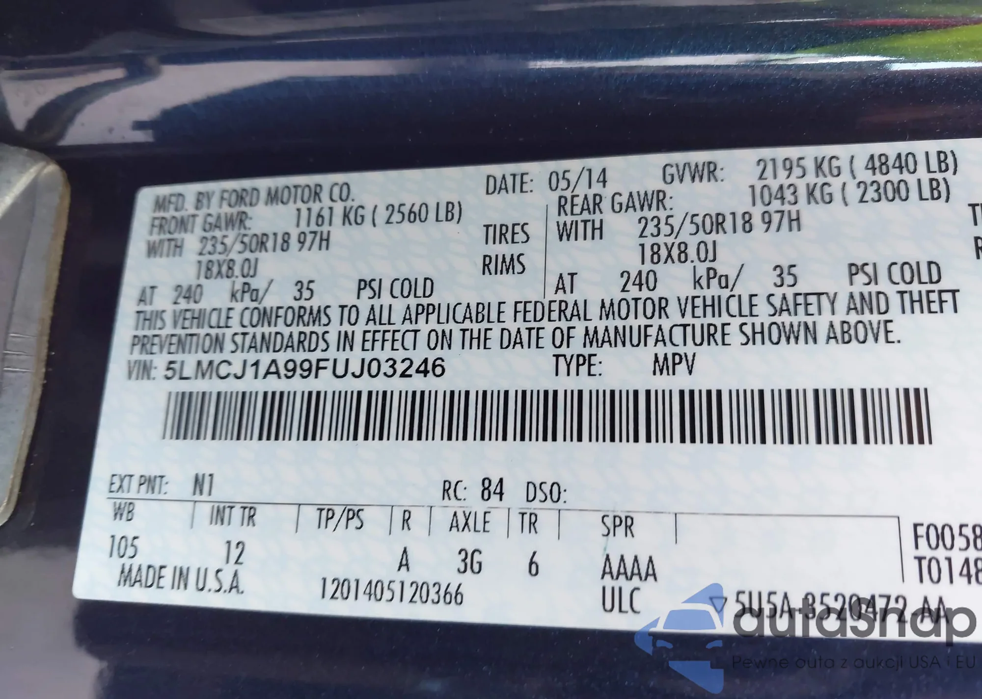 LOT: 43824802 VIN: KNAFX4A89F5343447