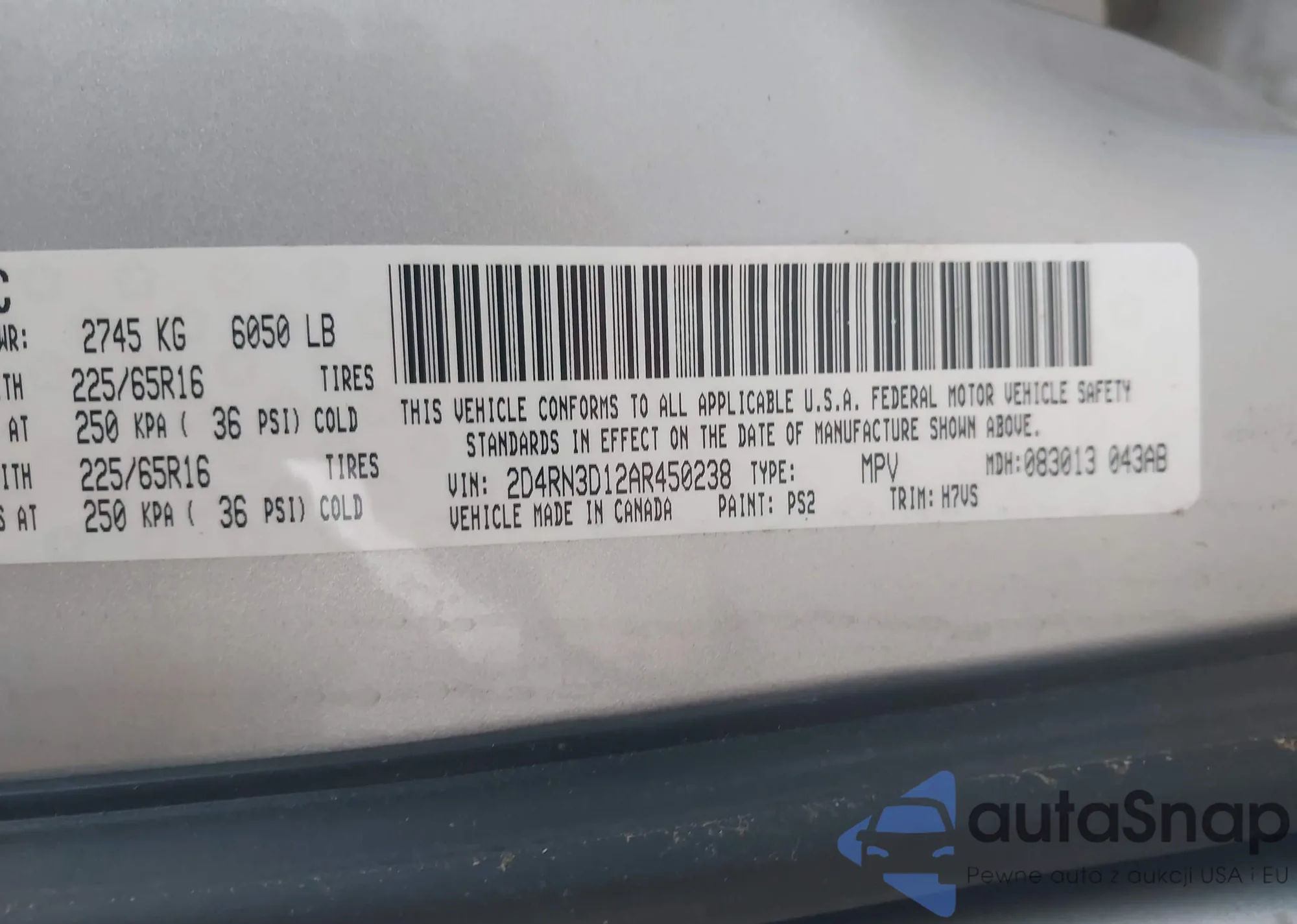 • VIN 2D4RN3D12AR450238