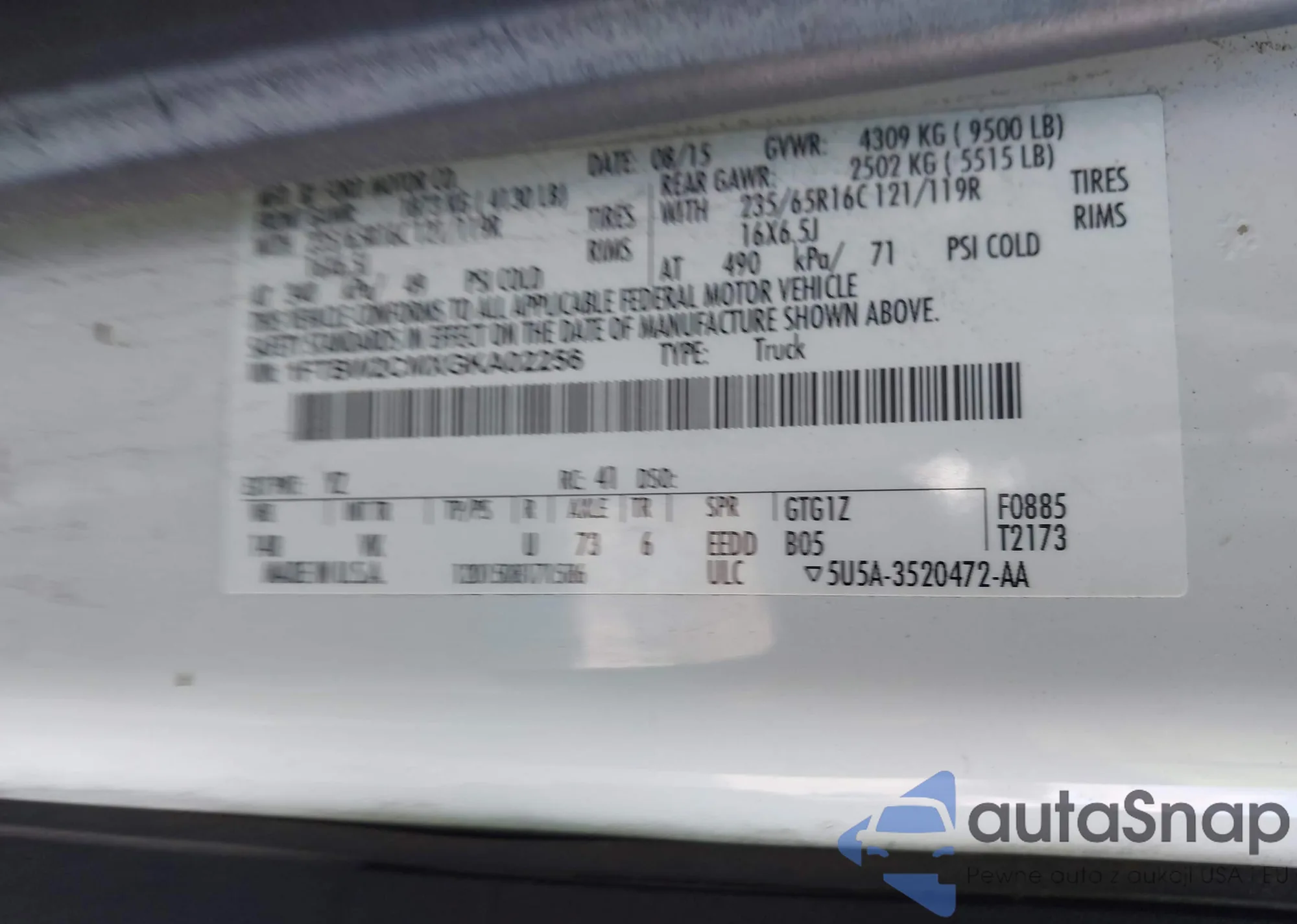 • VIN 1FTBW2CMXGKA02256