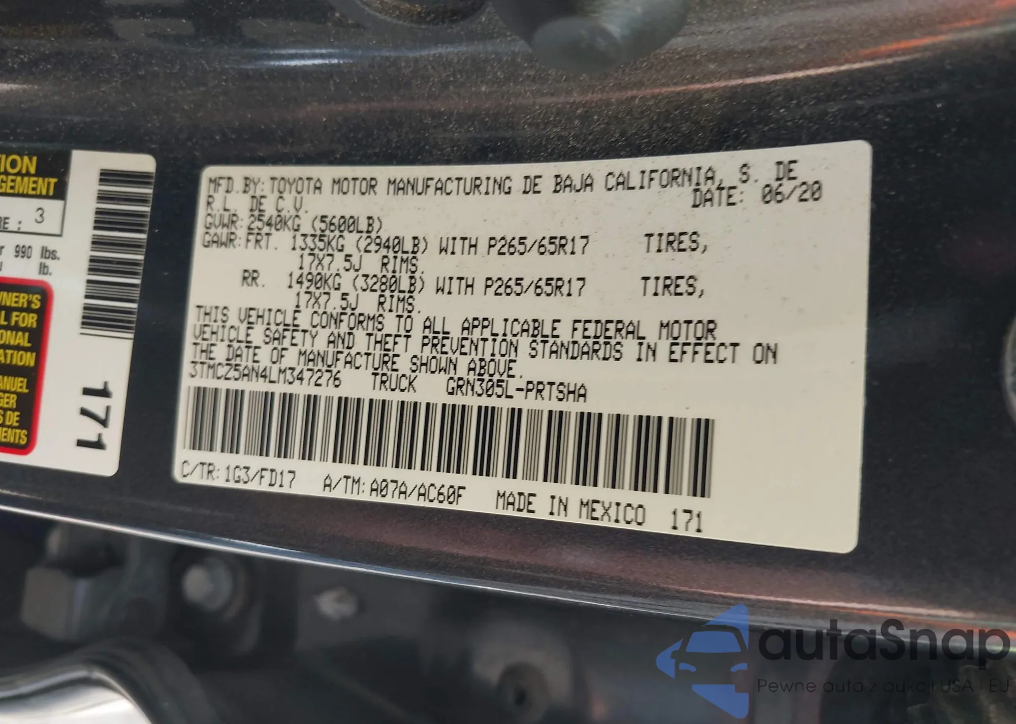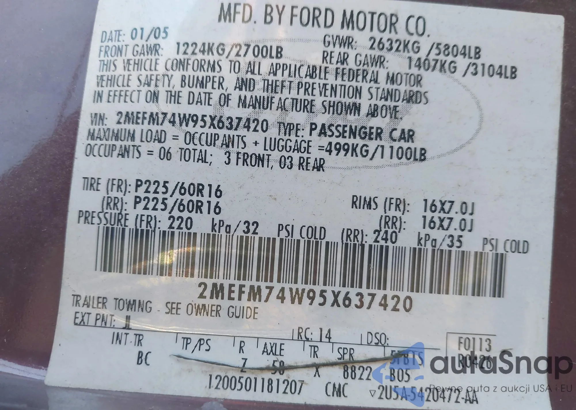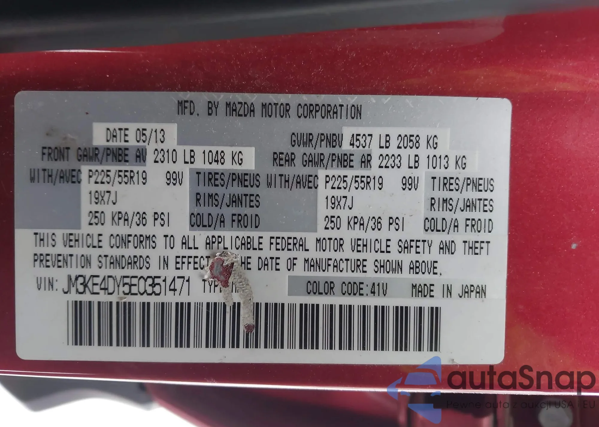 LOT: 43978547 VIN: JM3KE4DY5E0351471