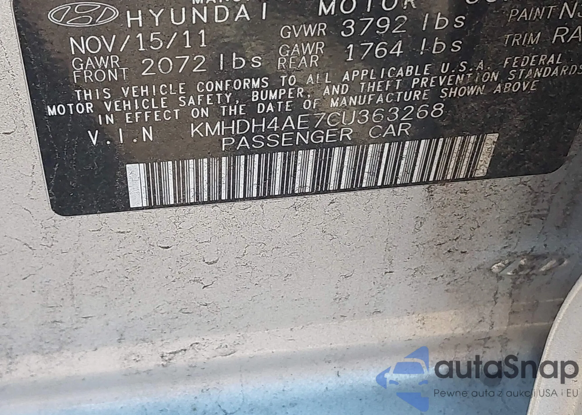 • VIN KMHDH4AE7CU363268