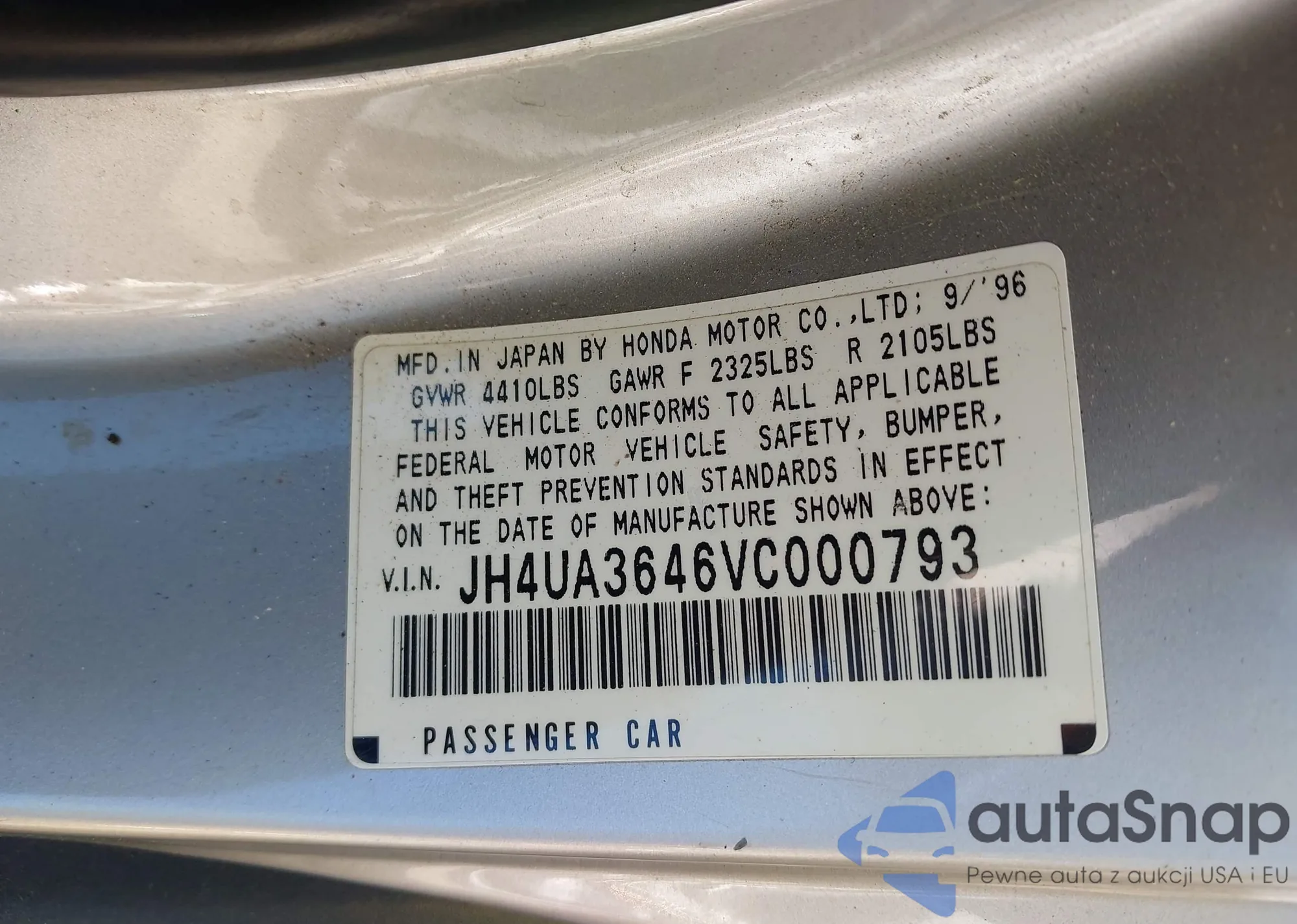 LOT: 43999273 VIN: JH4UA3646VC000793