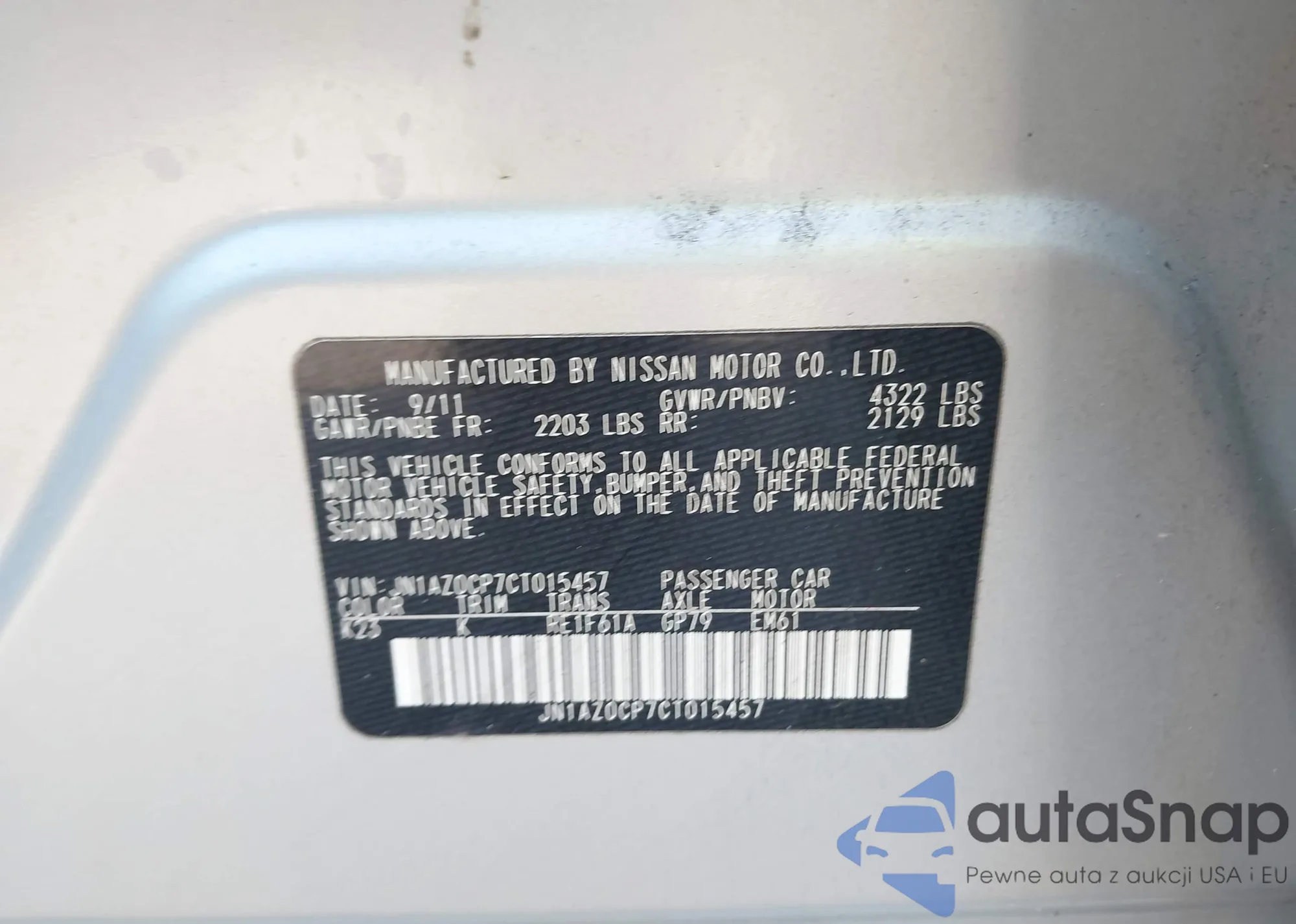 LOT: 44005146 VIN: JN1AZ0CP7CT015457