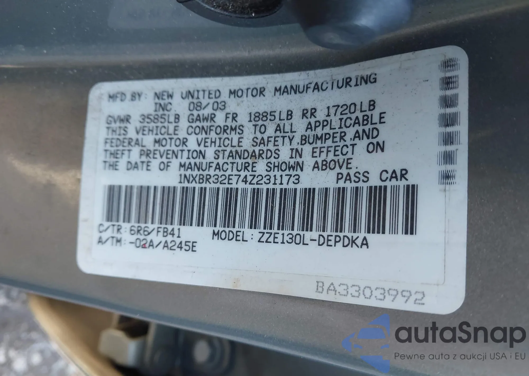 • VIN 1NXBR32E74Z231173