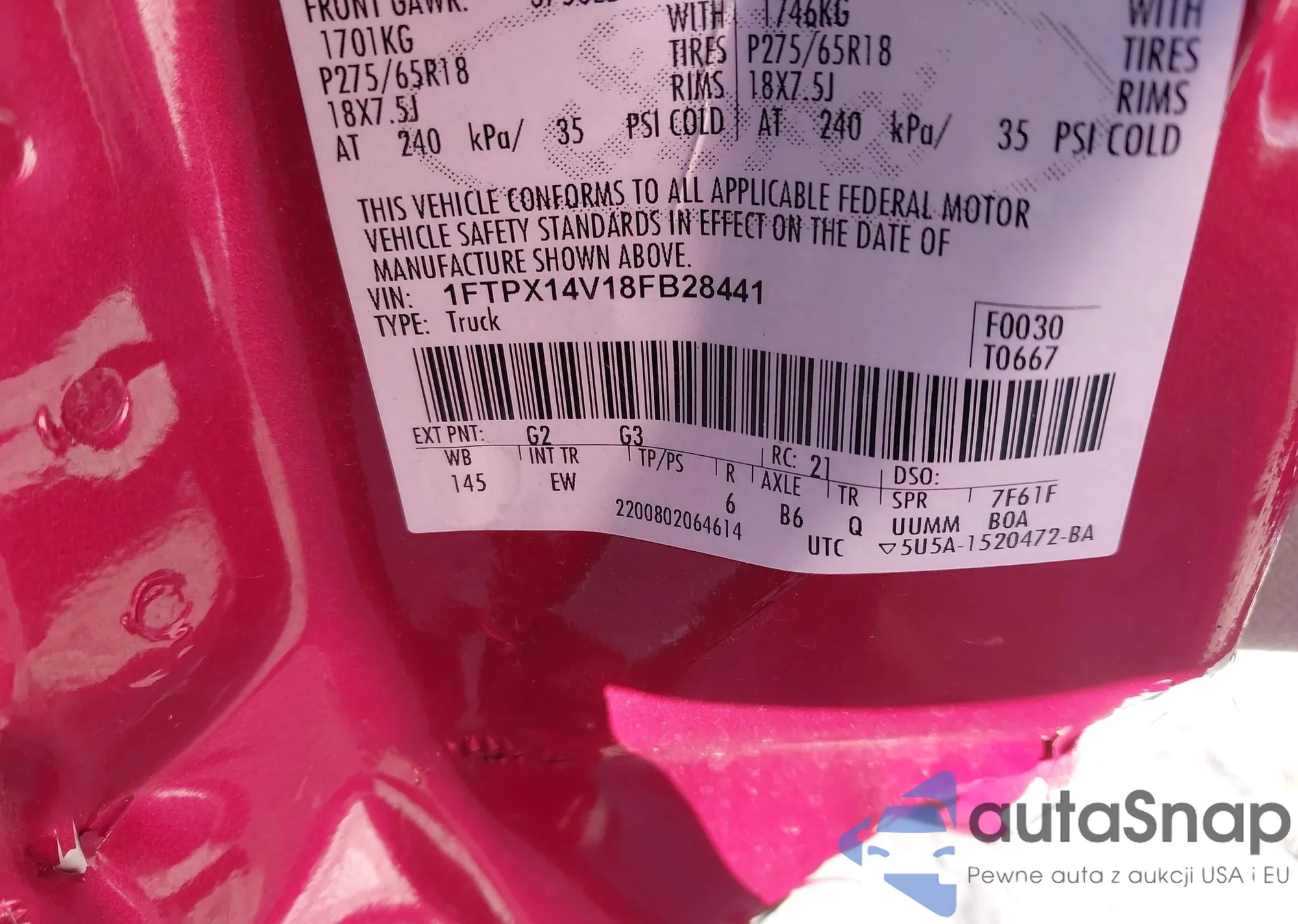 • VIN 1FTPX14V18FB28441