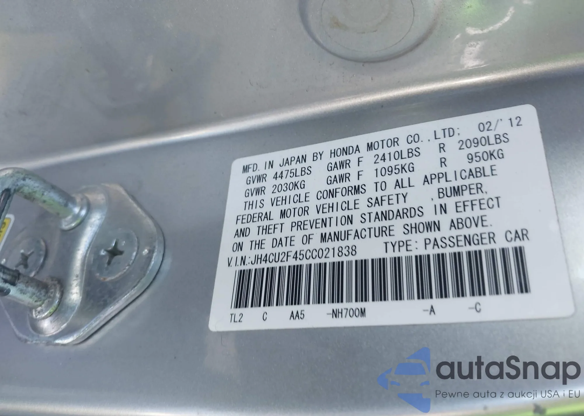 • VIN JH4CU2F45CC021838