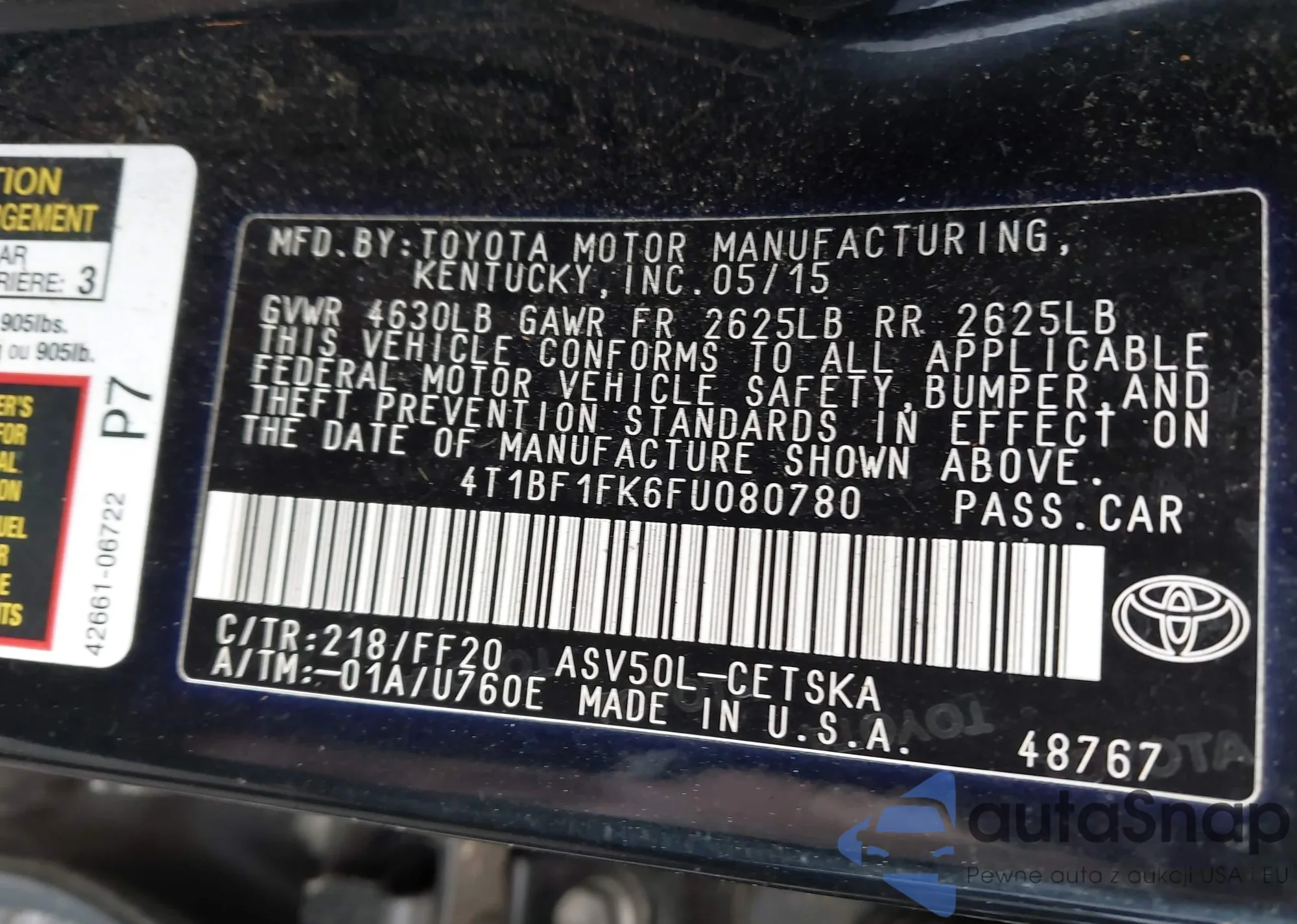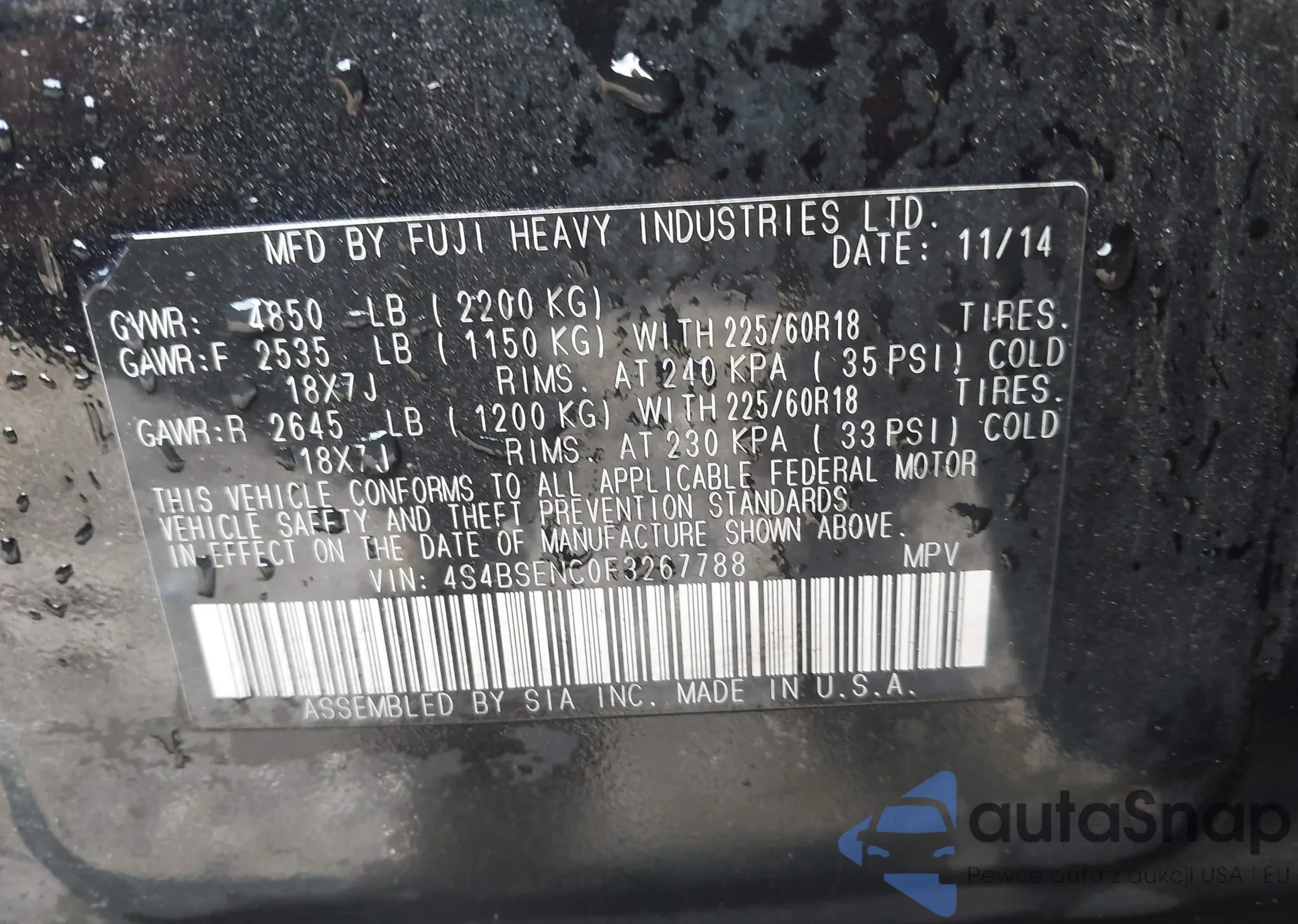 LOT: 43810769 VIN: 4S4BSENC0F3267788