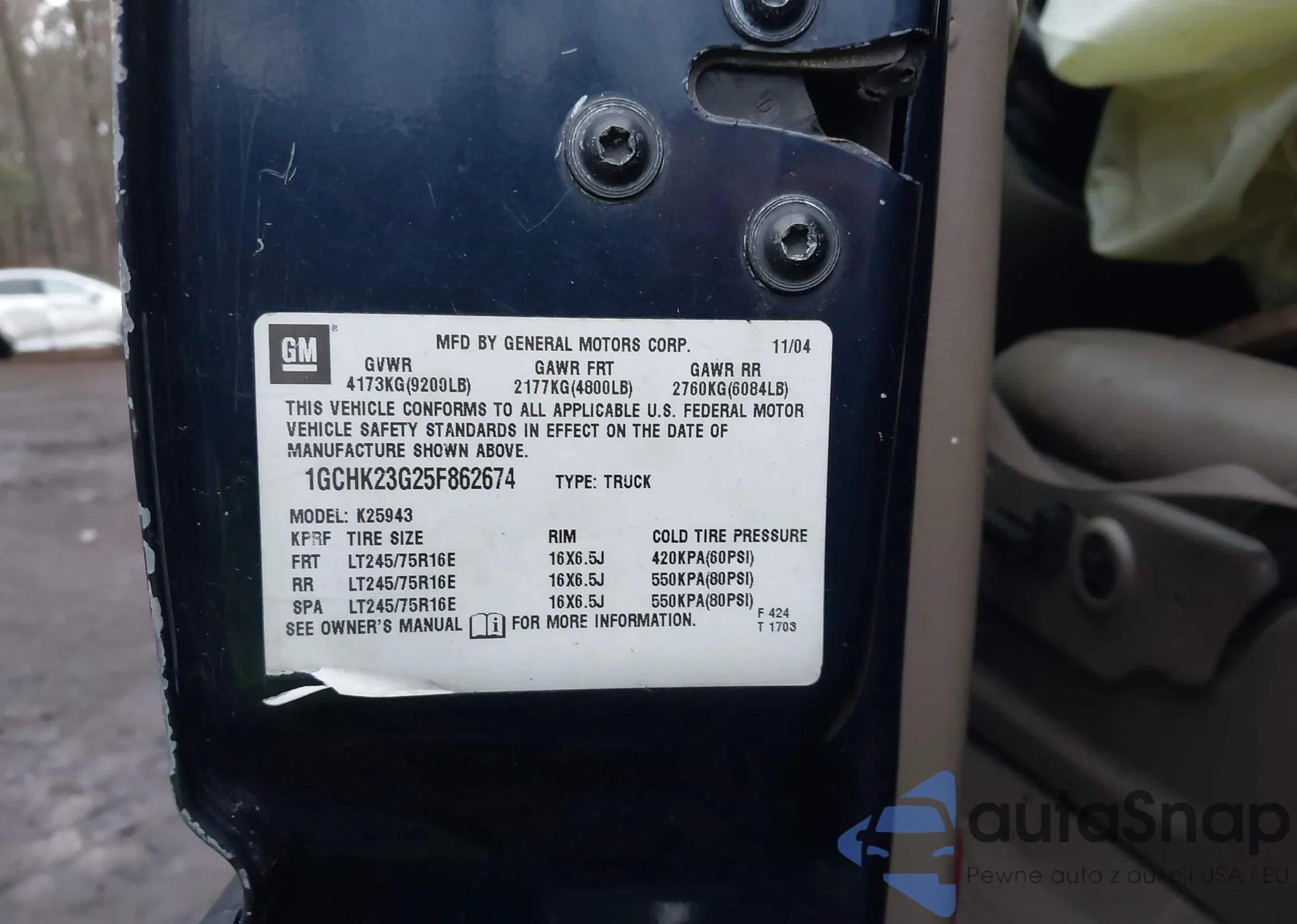 • VIN 1GCHK23G25F862674