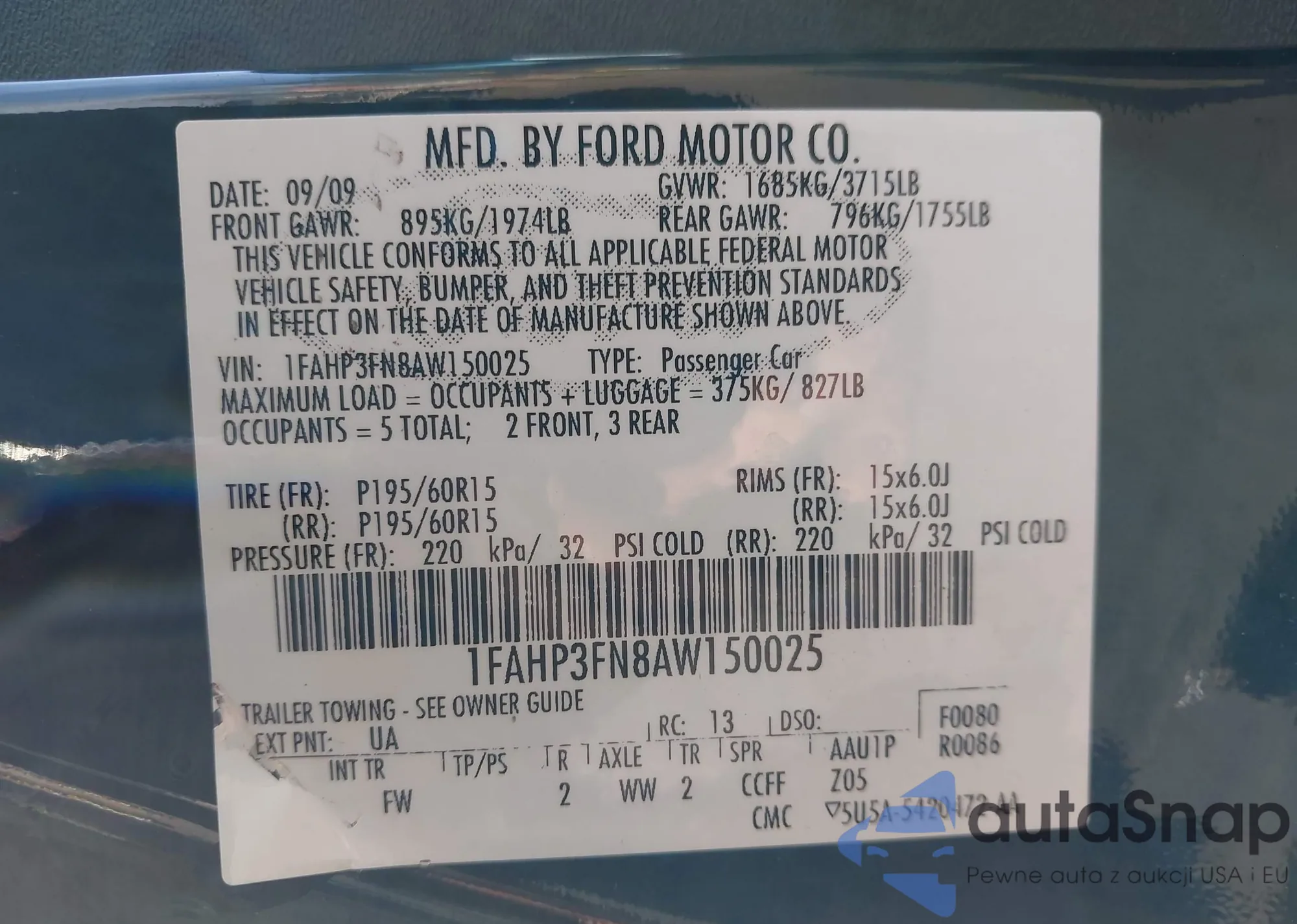 • VIN 1FAHP3FN8AW150025