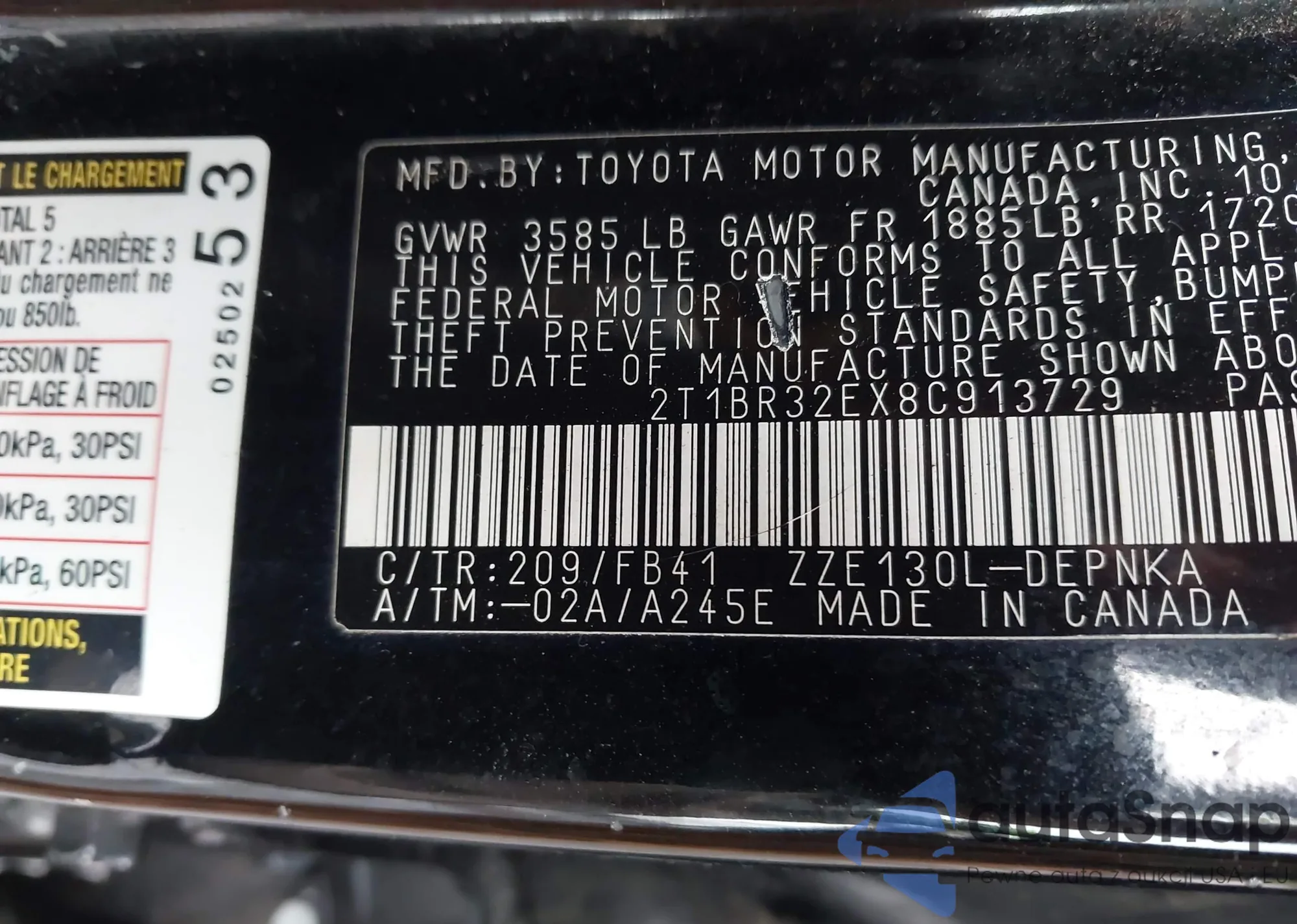 • VIN 2T1BR32EX8C913729