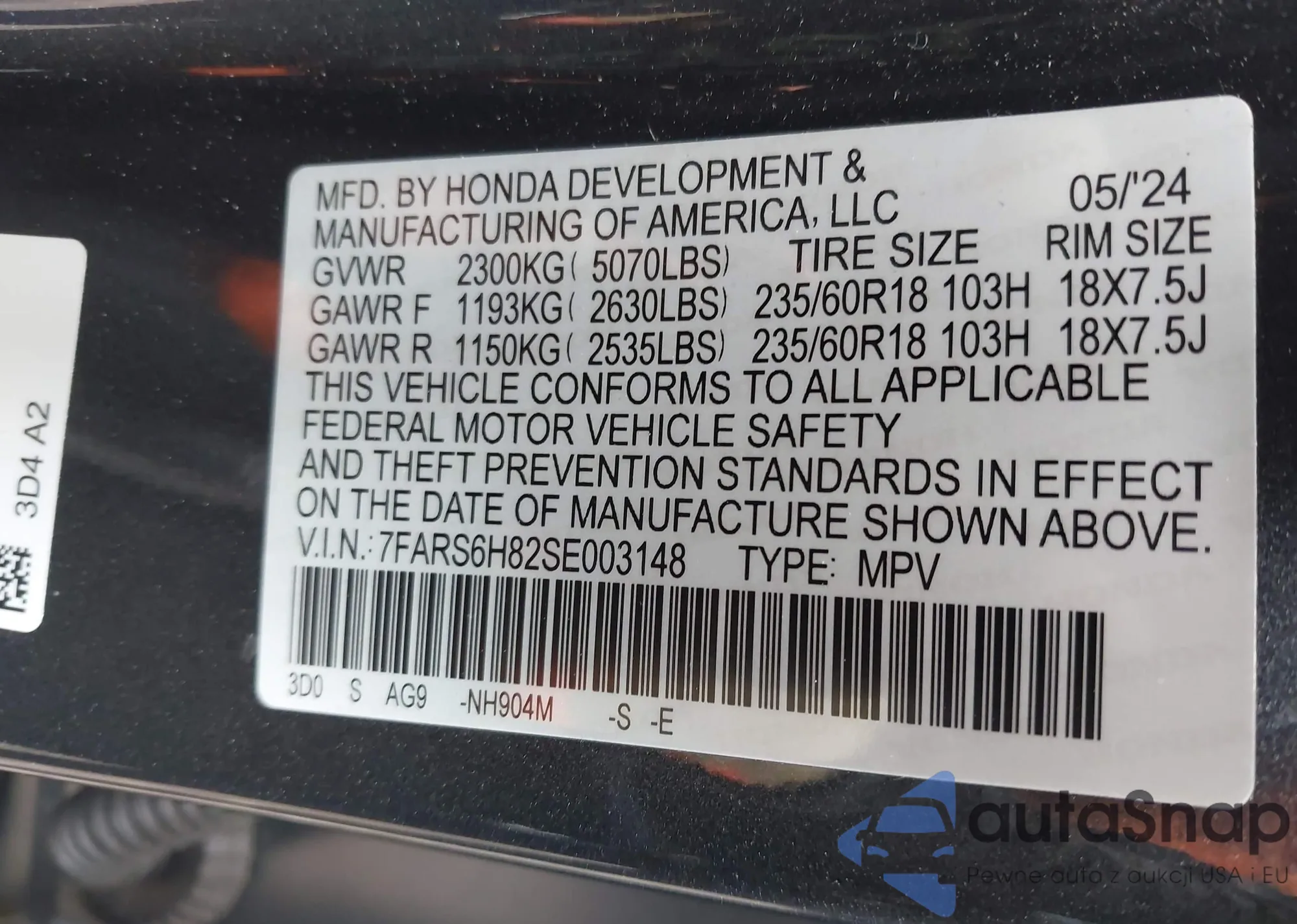 • VIN 5FNRL5H99FB074655