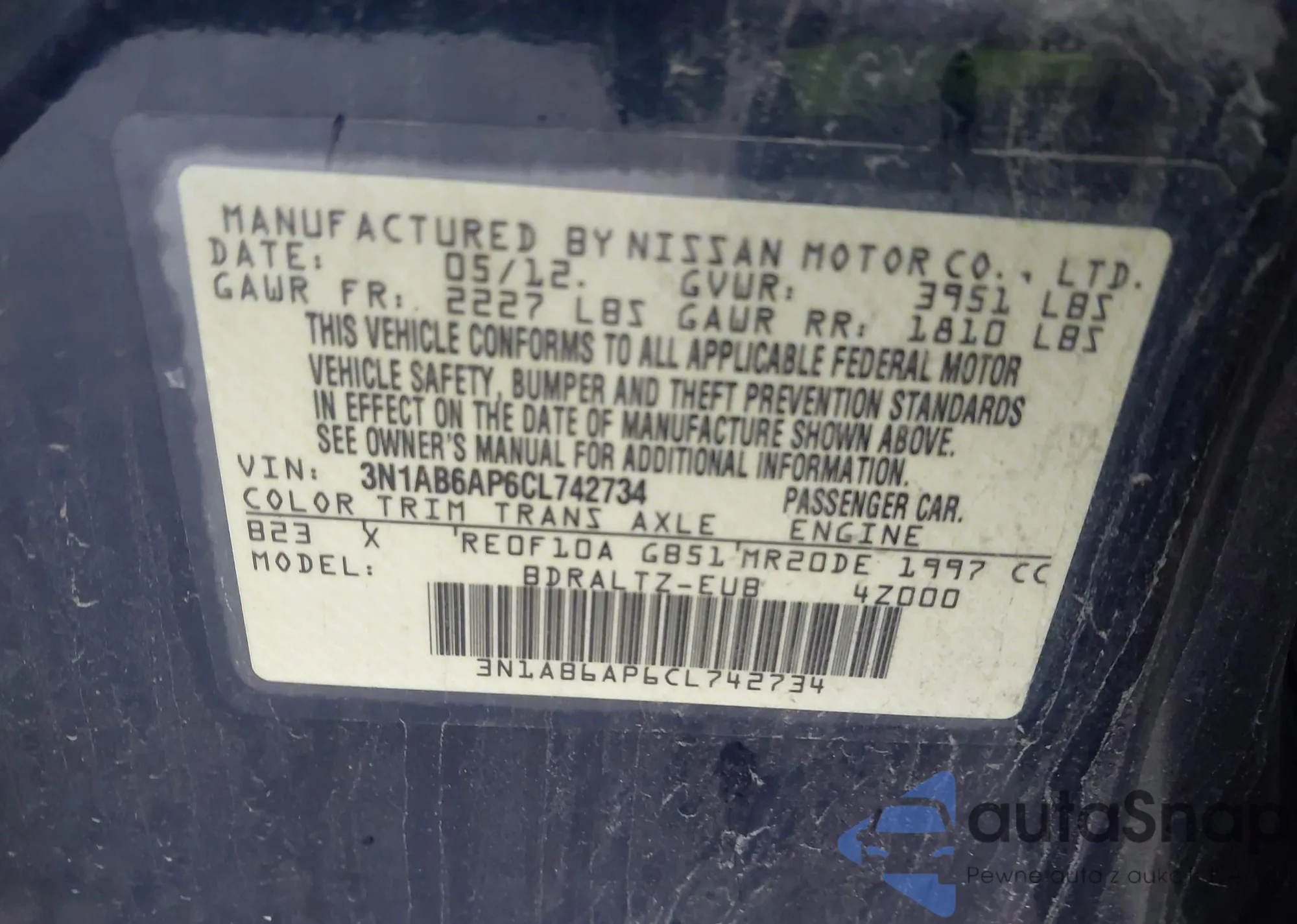 LOT: 43913484 VIN: 4T1BK36B17U238872