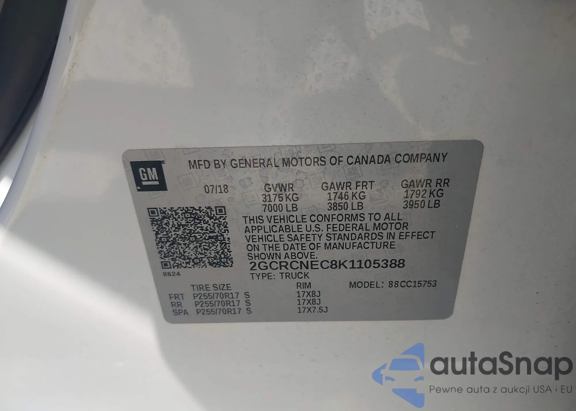 LOT: 43795391 VIN: 1GCPTEEK9T1122402