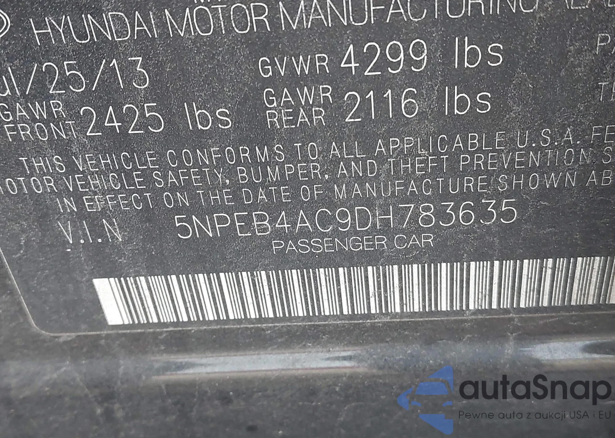 • VIN 5NPEB4AC9DH783635