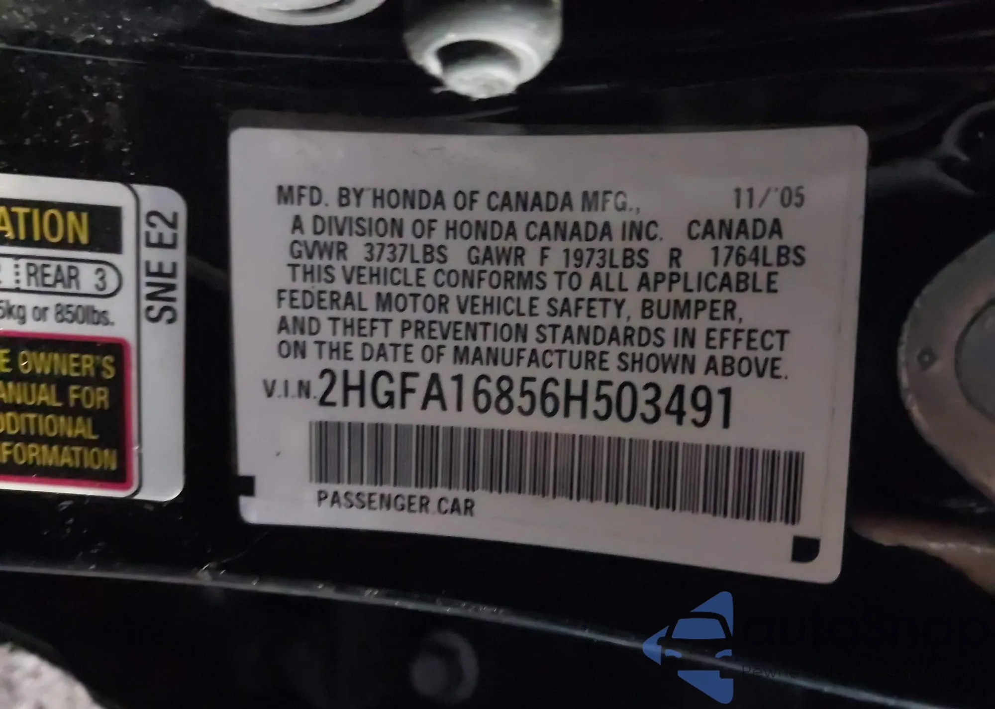• VIN 2HGFA16856H503491