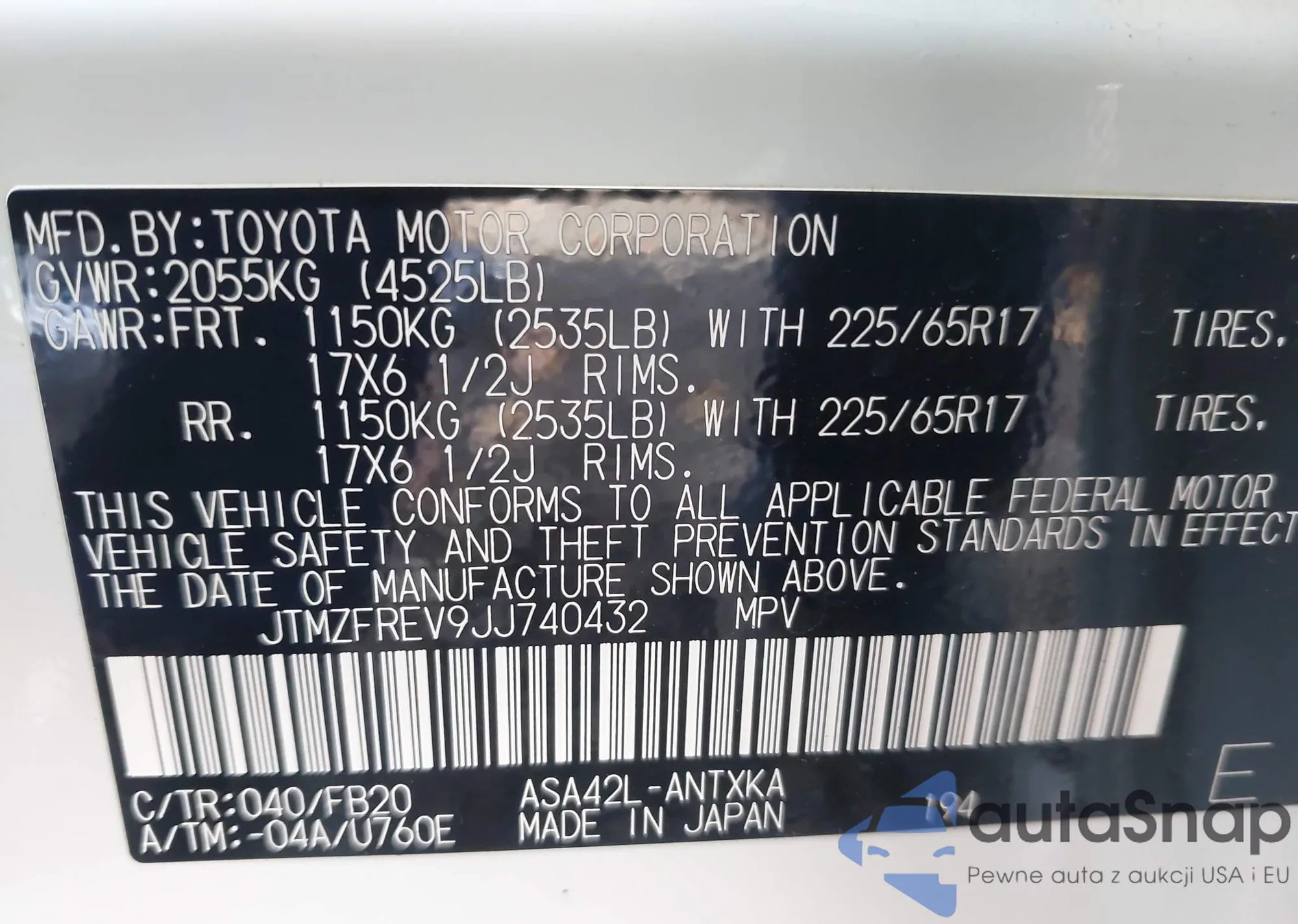 LOT: 43746105 VIN: JTNB11HK8J3051954