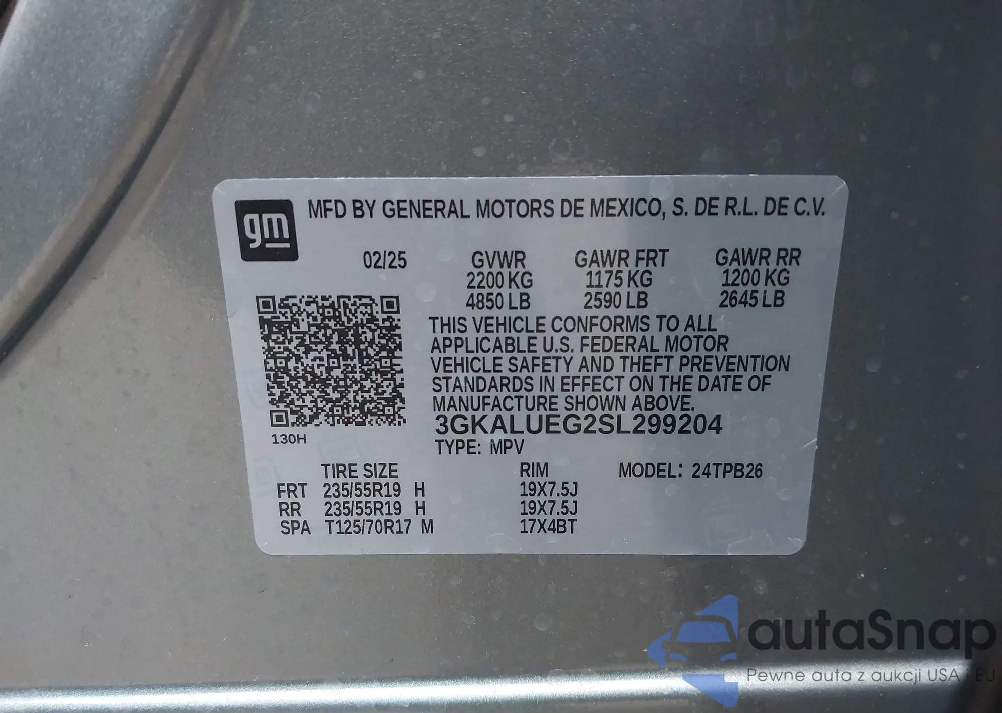 LOT: 43748124 VIN: 3GKALUEG2SL299204