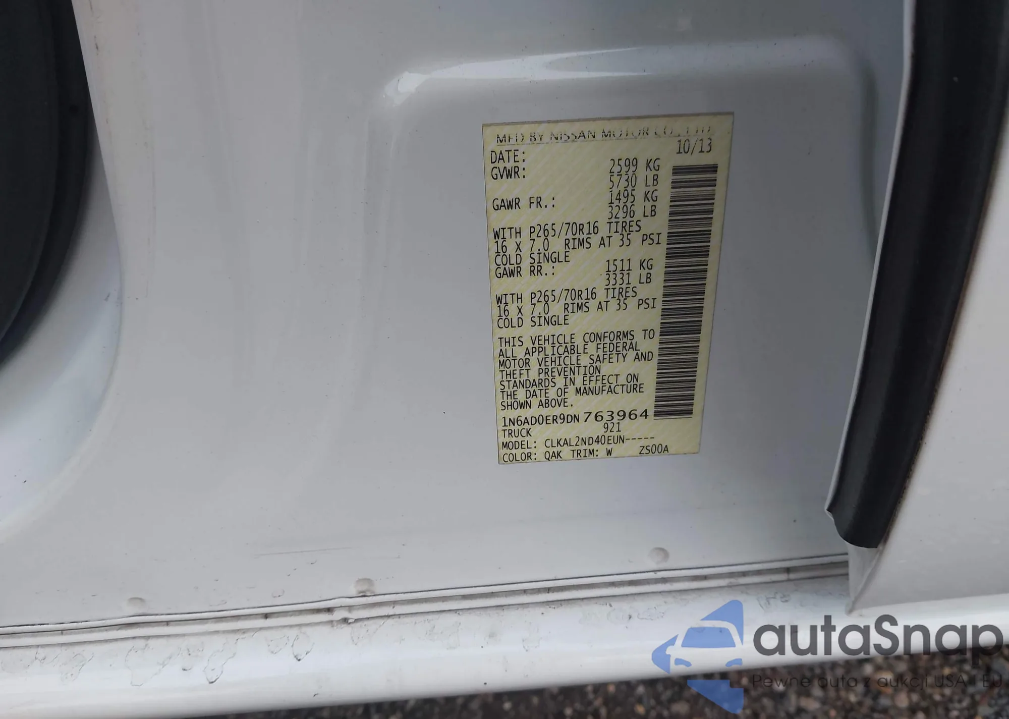 LOT: 43906669 VIN: 1N6AD0ER9DN763964