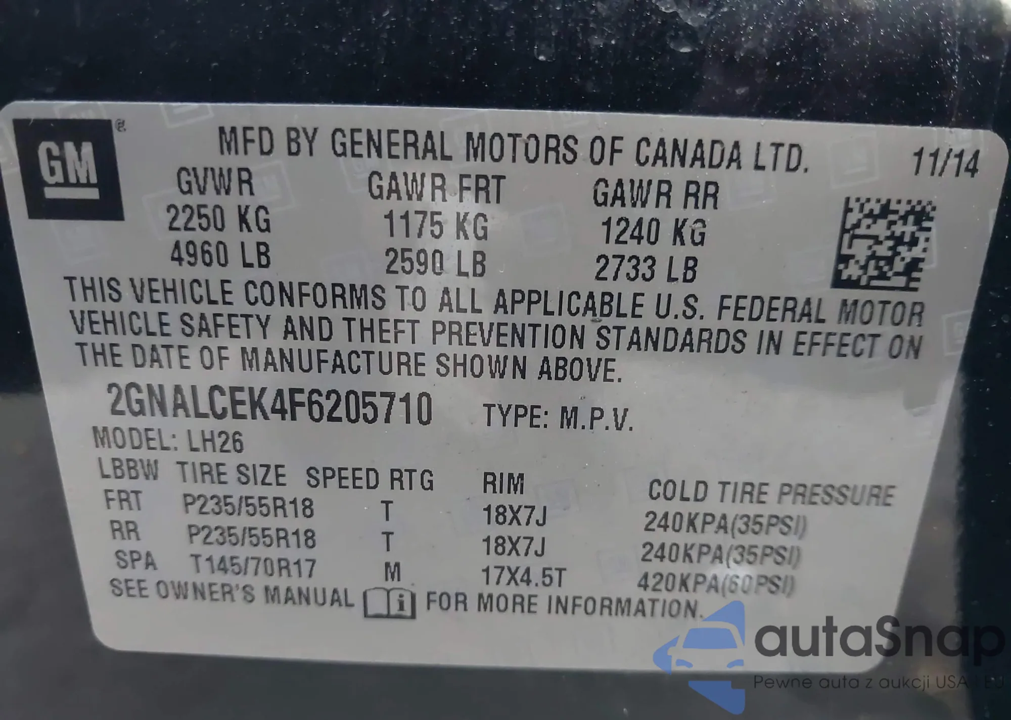 • VIN 2GKALNEK3H6343718
