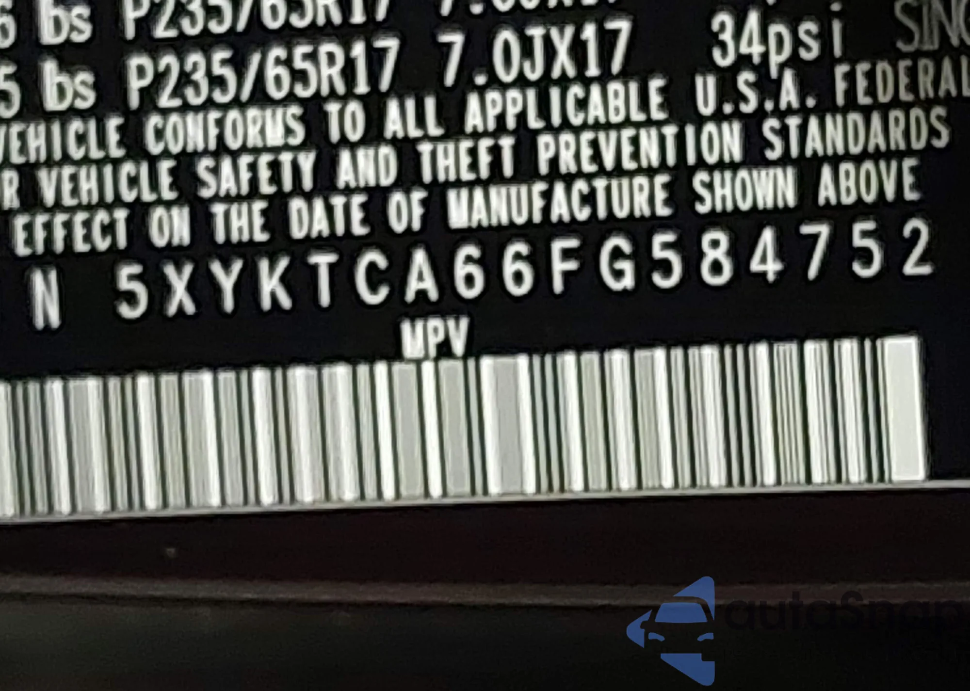 • VIN 5XYKTCA66FG584752