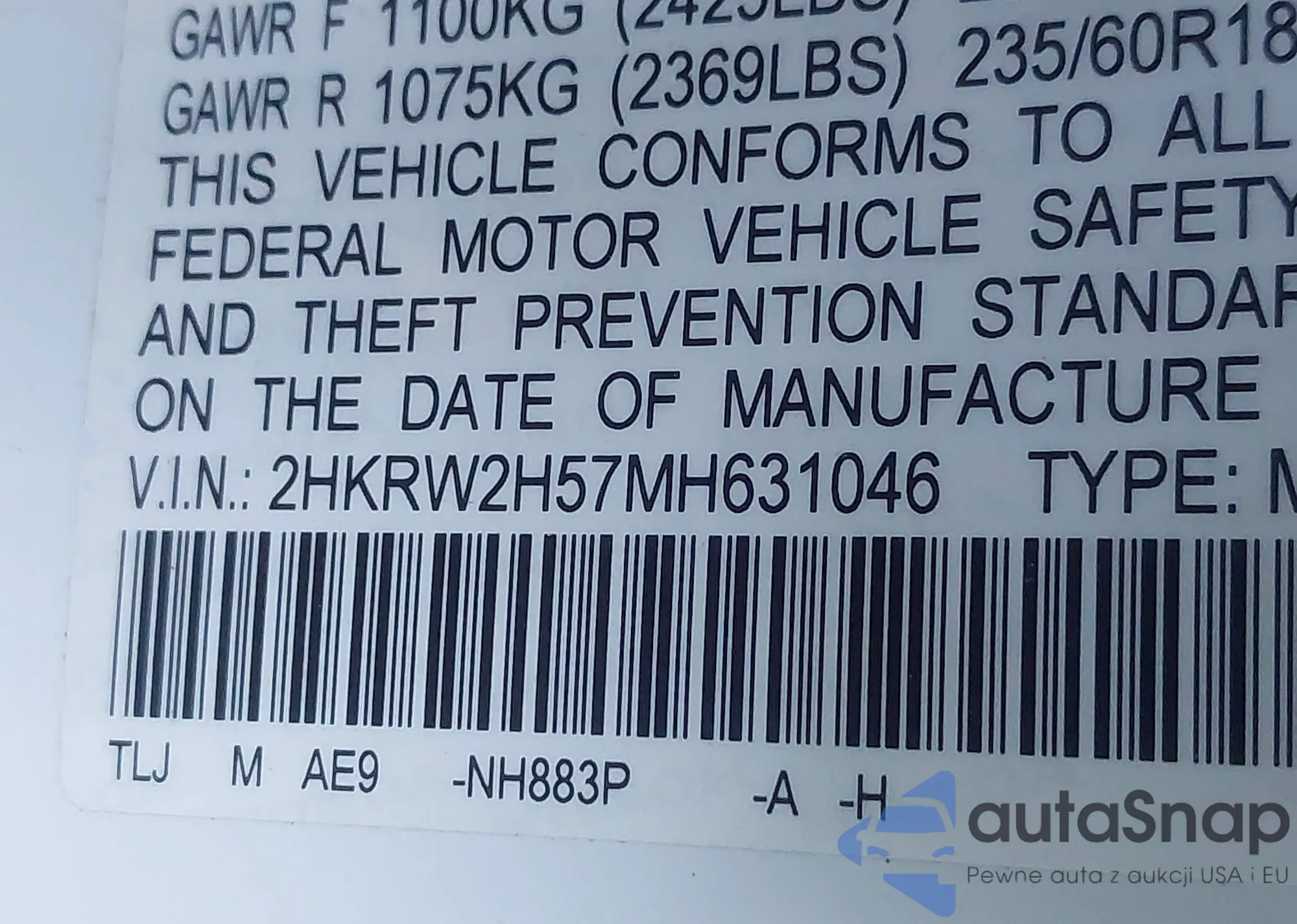 • VIN 2HKRW2H57MH631046