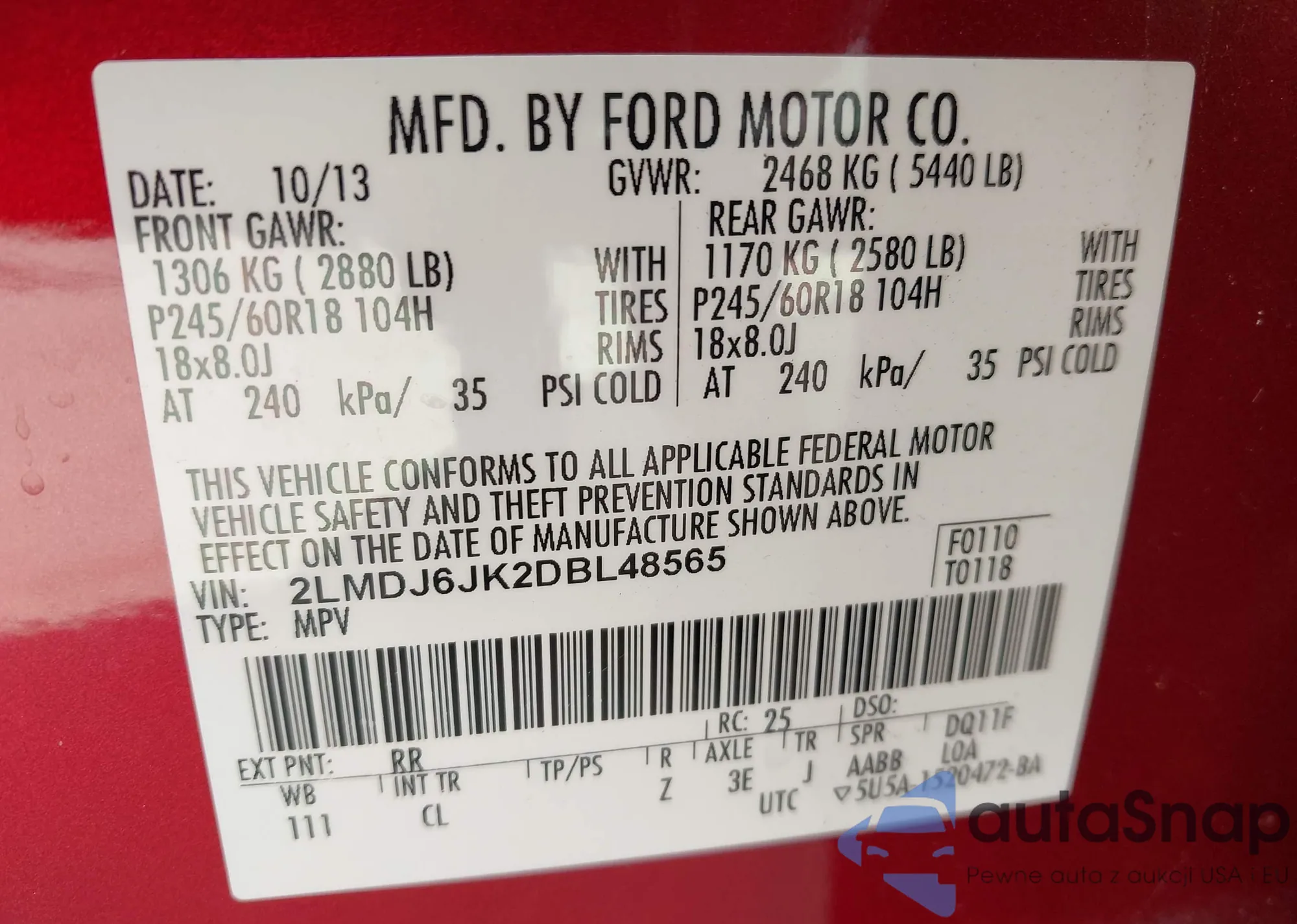 • VIN 2LMDJ6JK2DBL48565