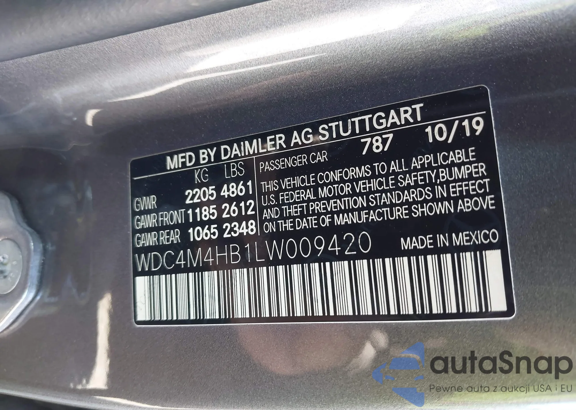 LOT: 43649836 VIN: WDC4M4HB1LW009420