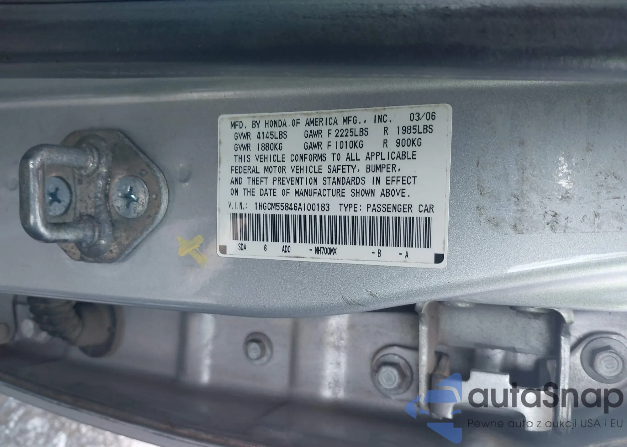 • VIN 1HGCP3F83AA011112