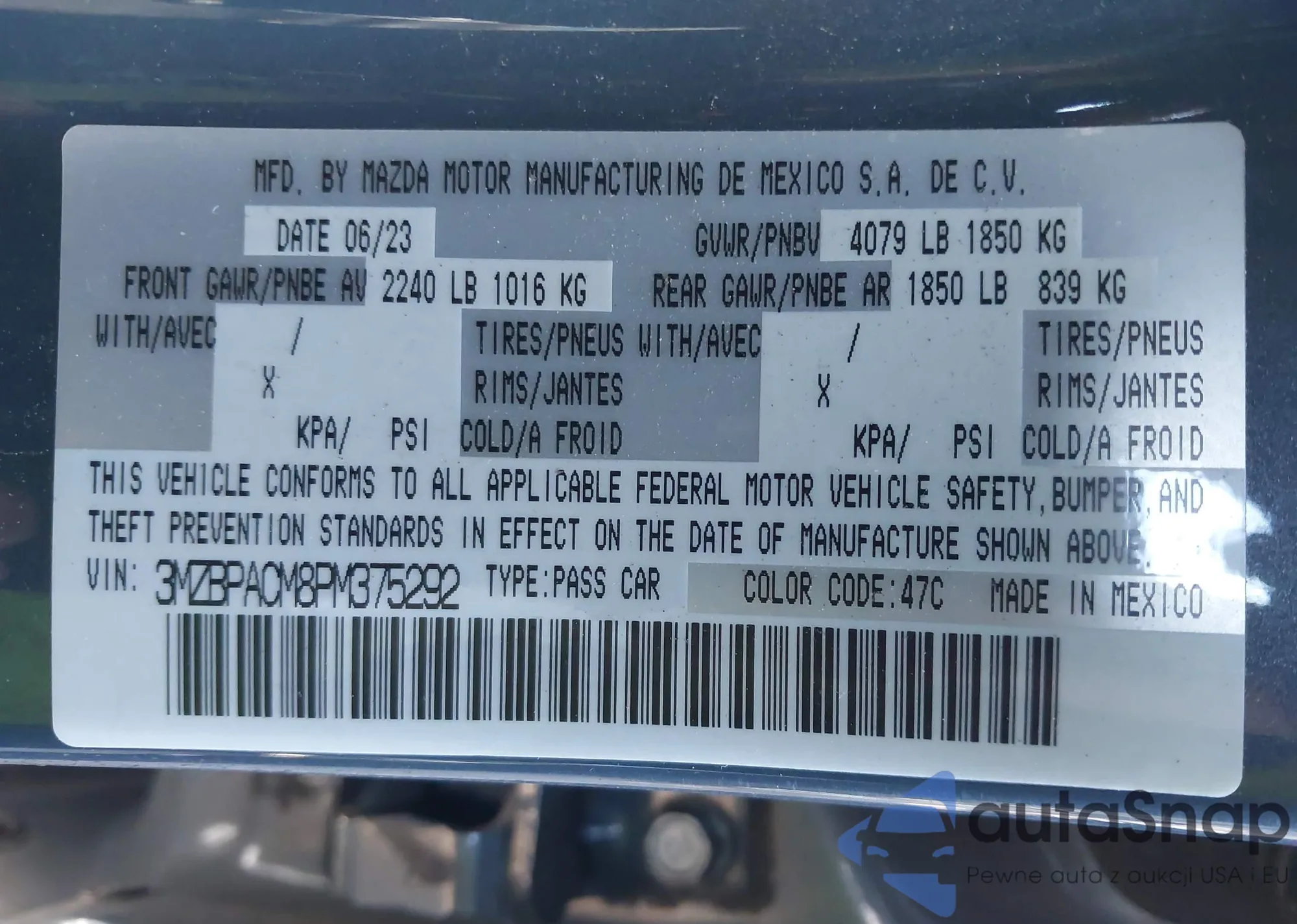 LOT: 43837590 VIN: 3MZBPACM8PM375292