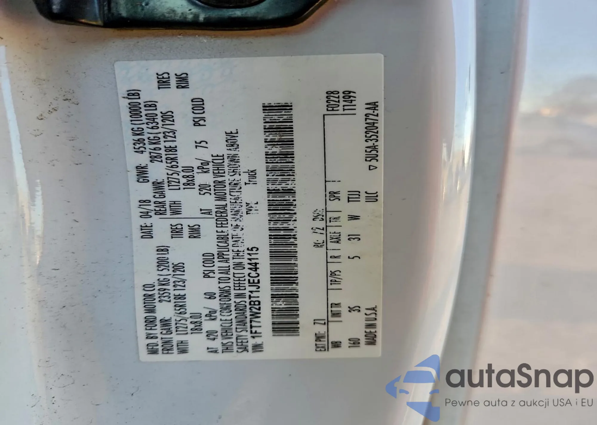 • VIN 1FTRW07LX1KE91866