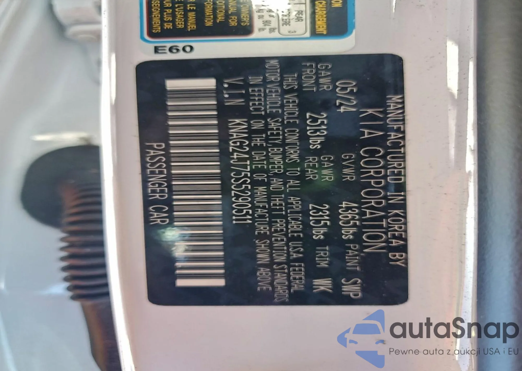 • VIN KNAG24J75S5290511