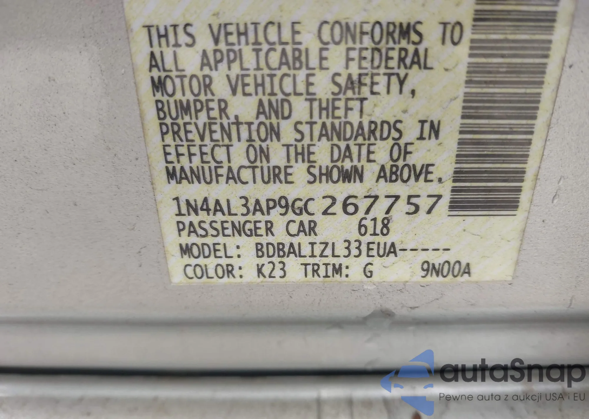 LOT: 43953622 VIN: 1HGCG55441A036109