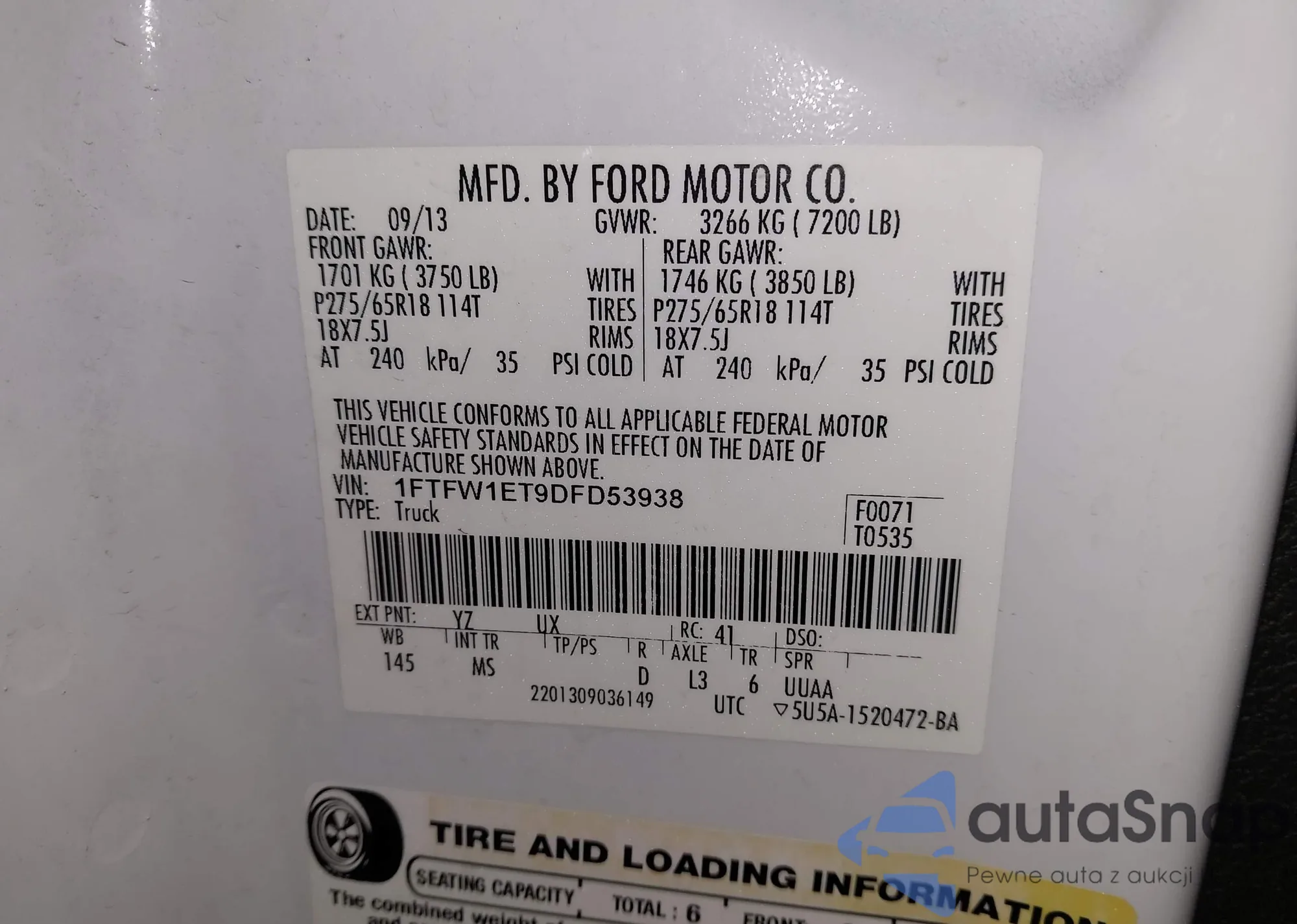 • VIN 1FTFW1ET9DFD53938