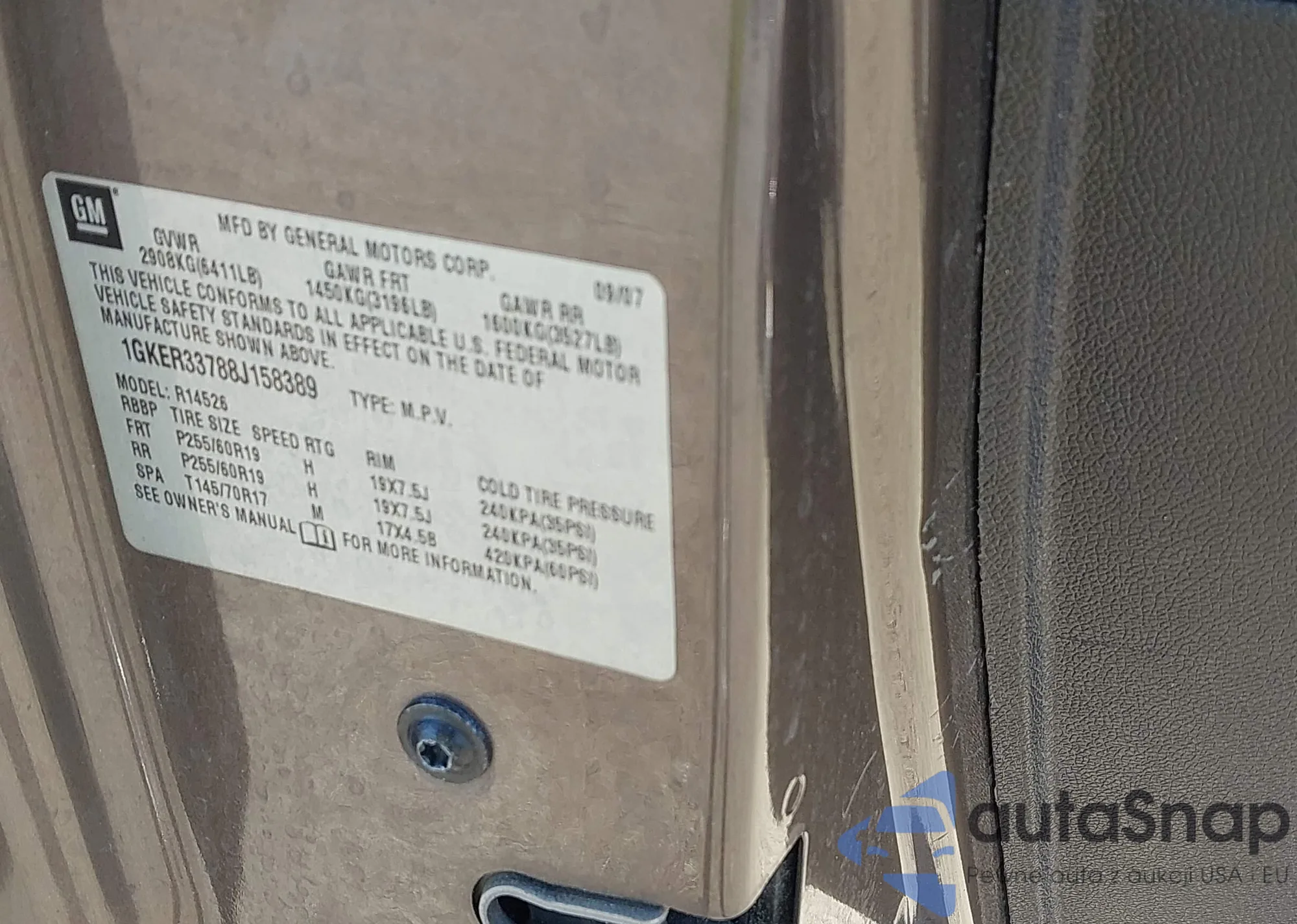 LOT: 43873127 VIN: 5UXKR2C58H0U18351