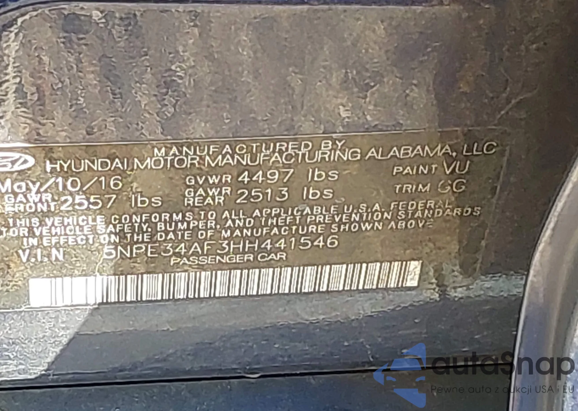 • VIN 5NPE34AF3HH441546