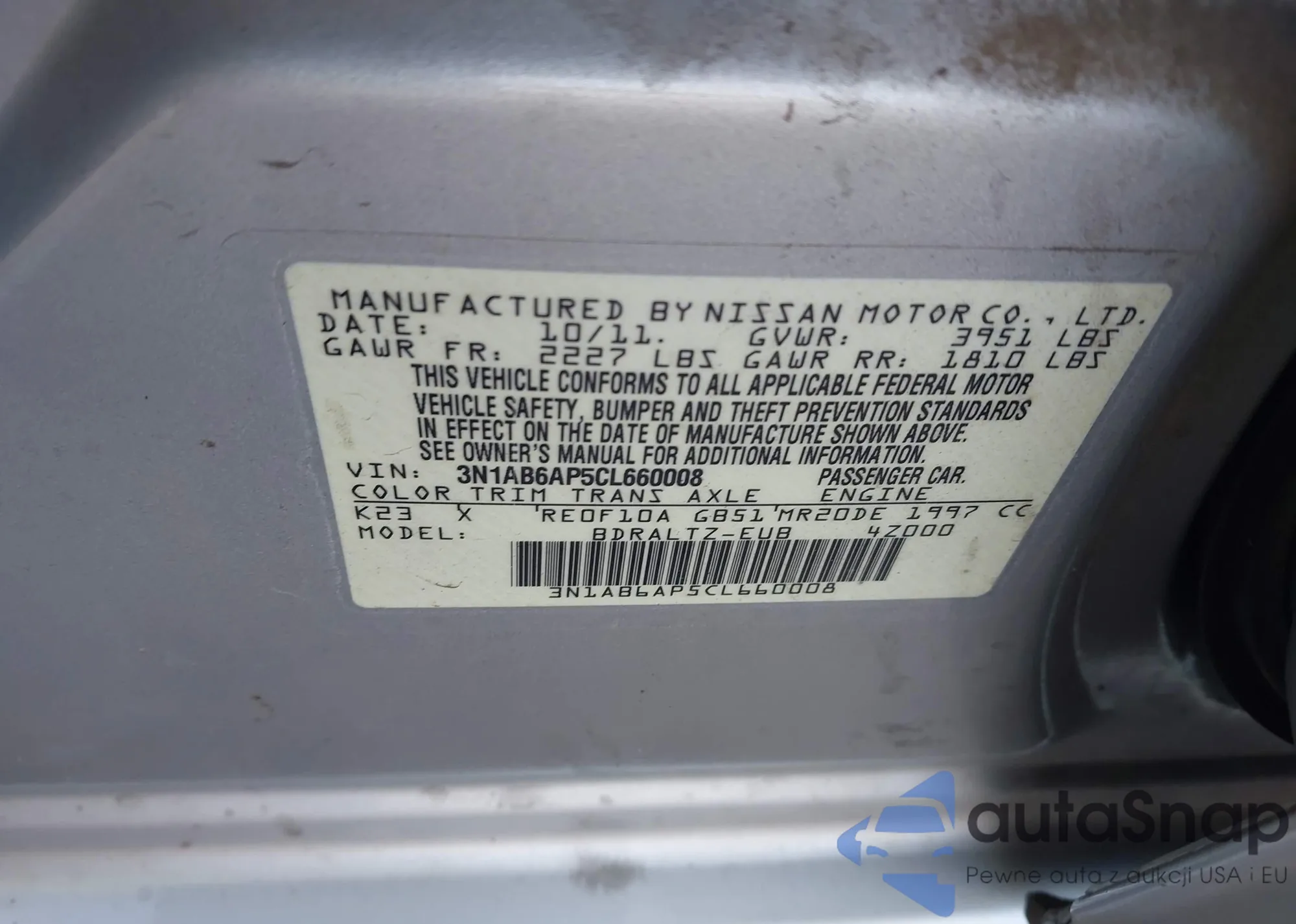 • VIN 1N4AA5APXCC836918