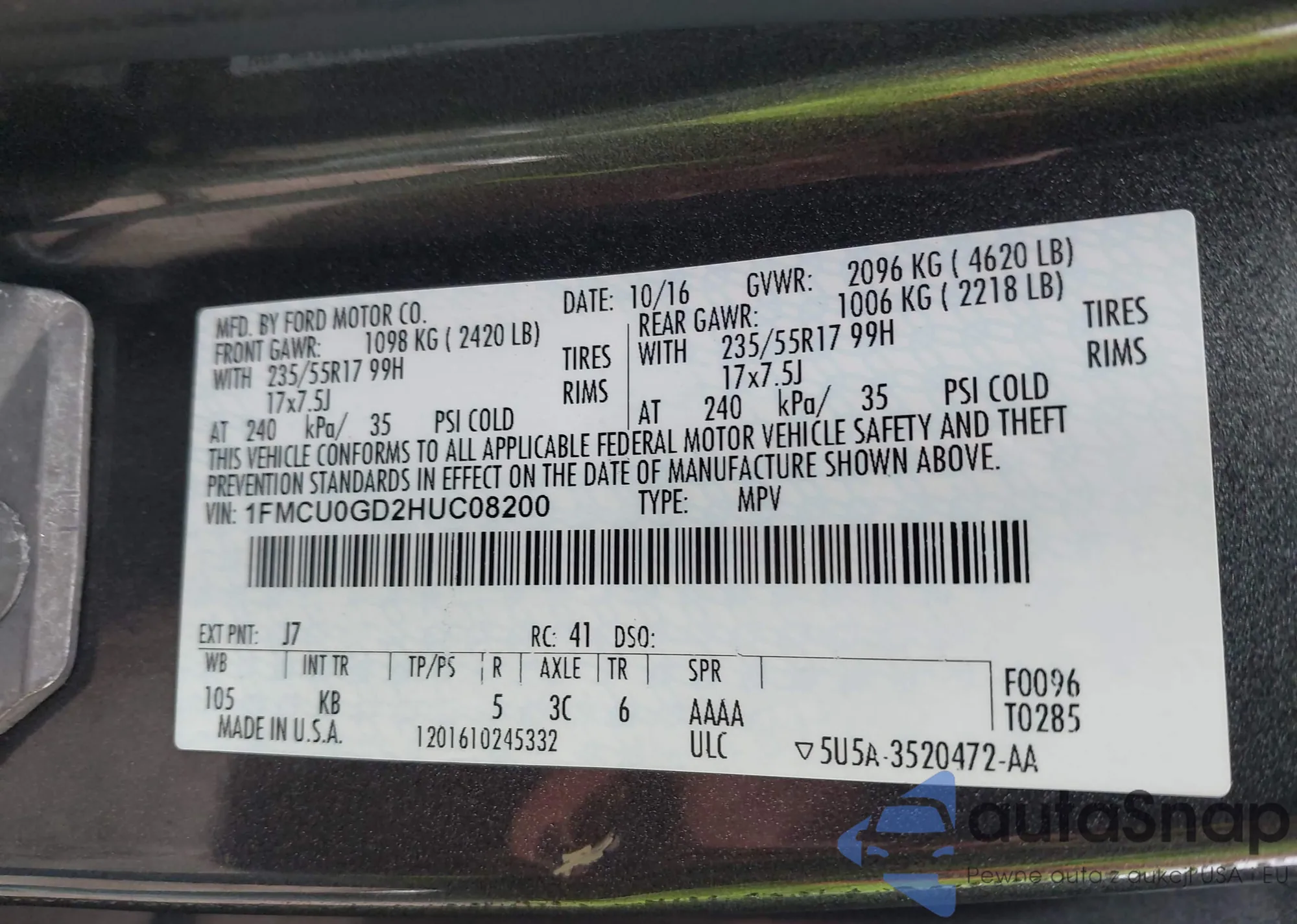 • VIN 1FMCU0JX2GUA30516