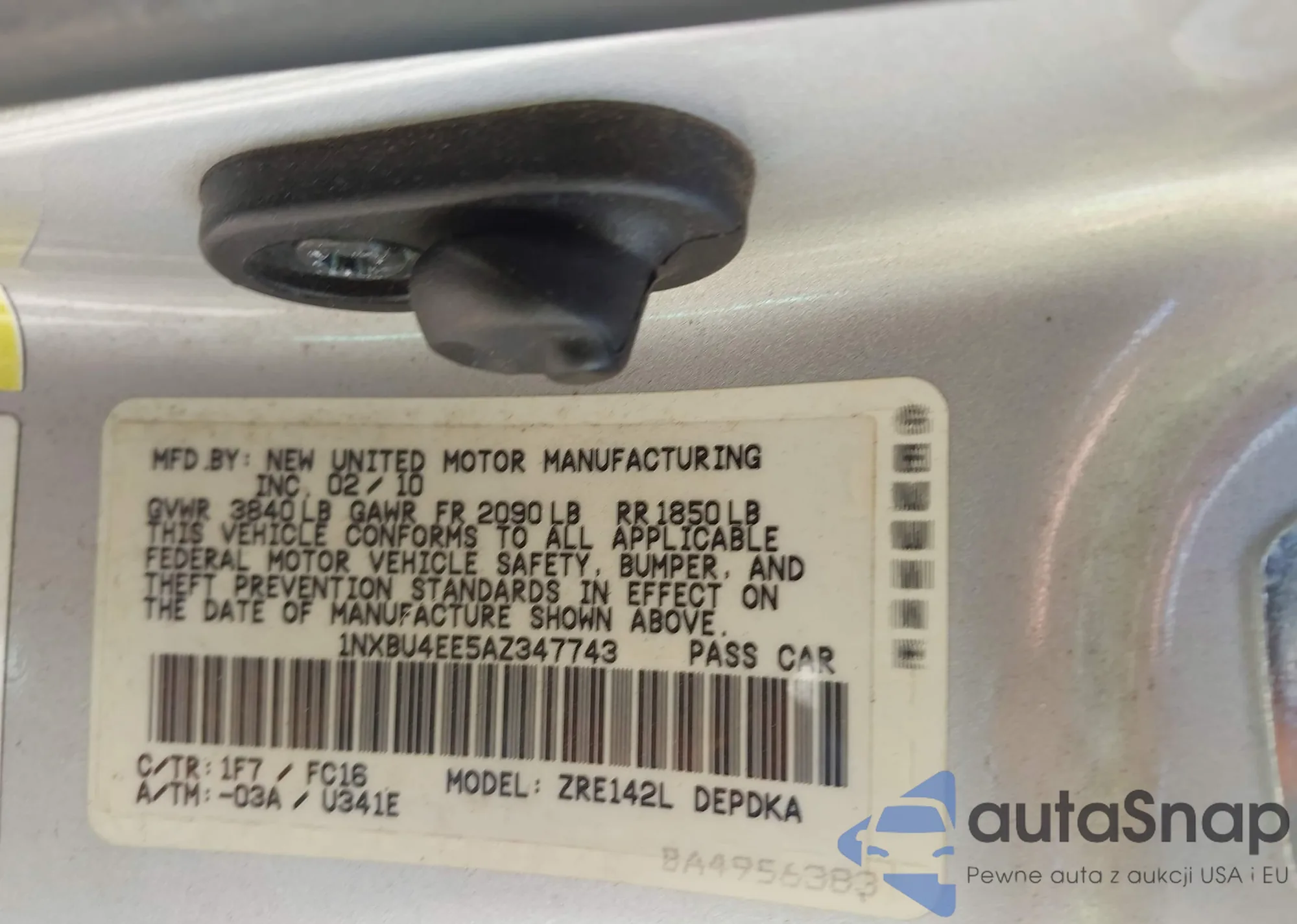 • VIN 1NXBU4EE5AZ347743